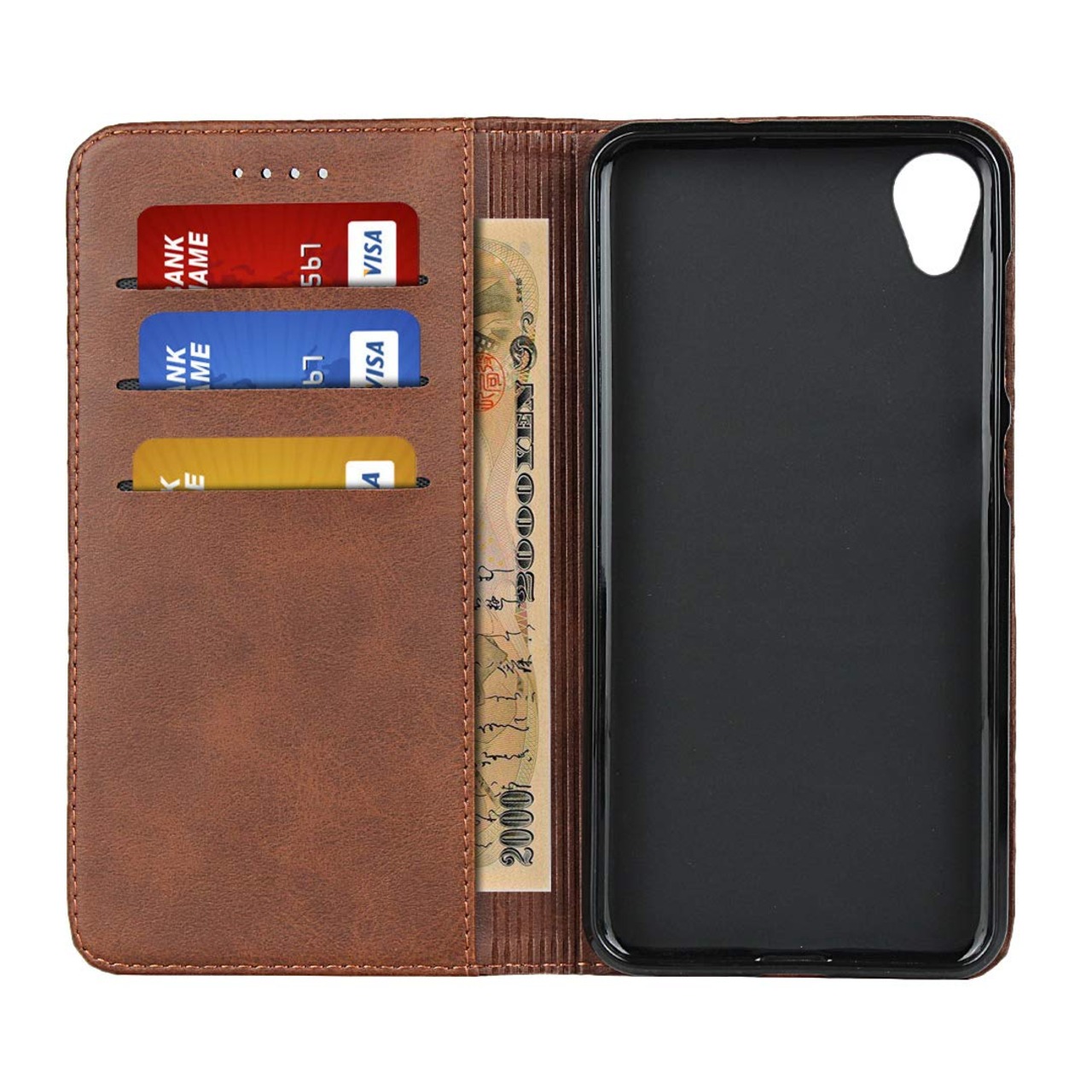 Eastwave ASUS ZenFone Live L1 ケース ZA550KL 手帳型 カバー 耐衝撃 携帯カバー 収納 横置きスタンド 内蔵マグネット 合成皮革 財布型カバー 機能 人気 おしゃれ 二つ折り 耐汚れ 耐衝撃 5色 ダークブラウン