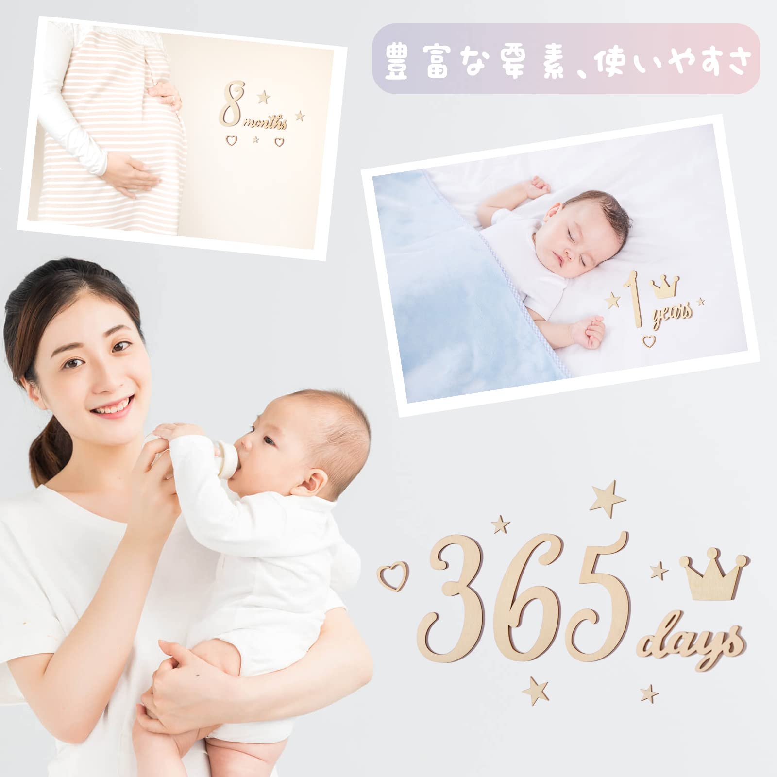 【使いやすさ】:基本的な数字とテキストに加えて、人気のある「王冠」、「星」、「ハート」など、DIYの構成要素も豊富に用意されています。 さまざまなキュートで楽しいパターンを簡単に組み合わせて、あなたと赤ちゃんのためのユニークで完璧な写真を作成できます。