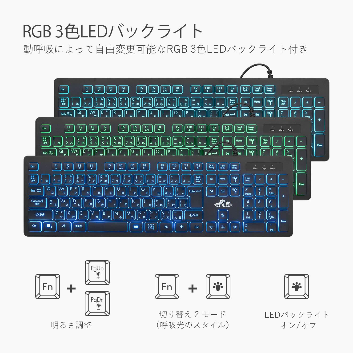 Rii キーボード マウスセット 有線 薄型 静音 3色 LEDバックライト 108キー 日本語配列 3階段マウス 有線 キーボード