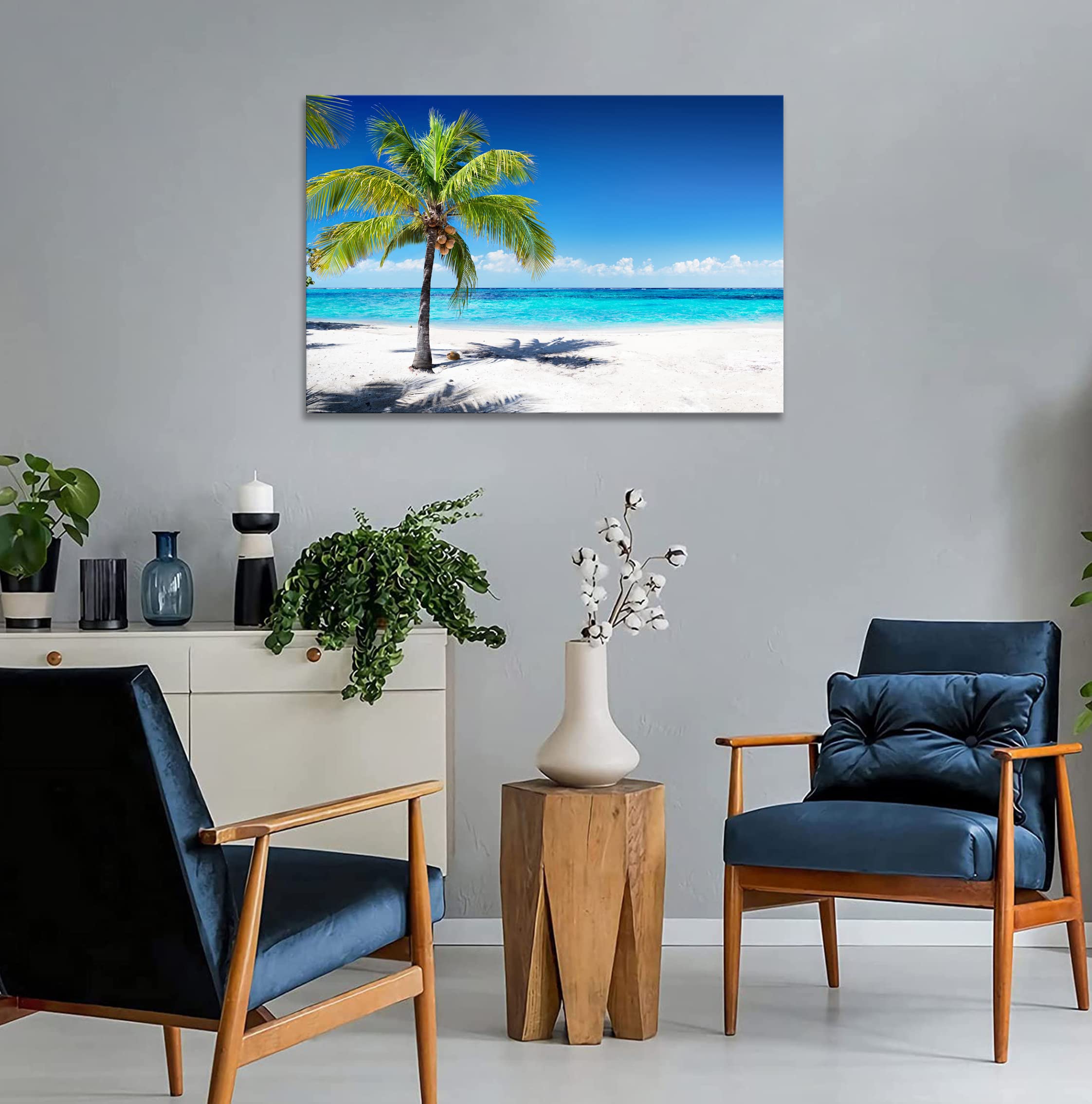 海絵 アートパネル 海 椰 自然風景 日光 絵画 太陽 風景画 壁掛け 風水 玄関 開運 室内装飾 木枠付きの完成品 (30x40cm x1Pcs)