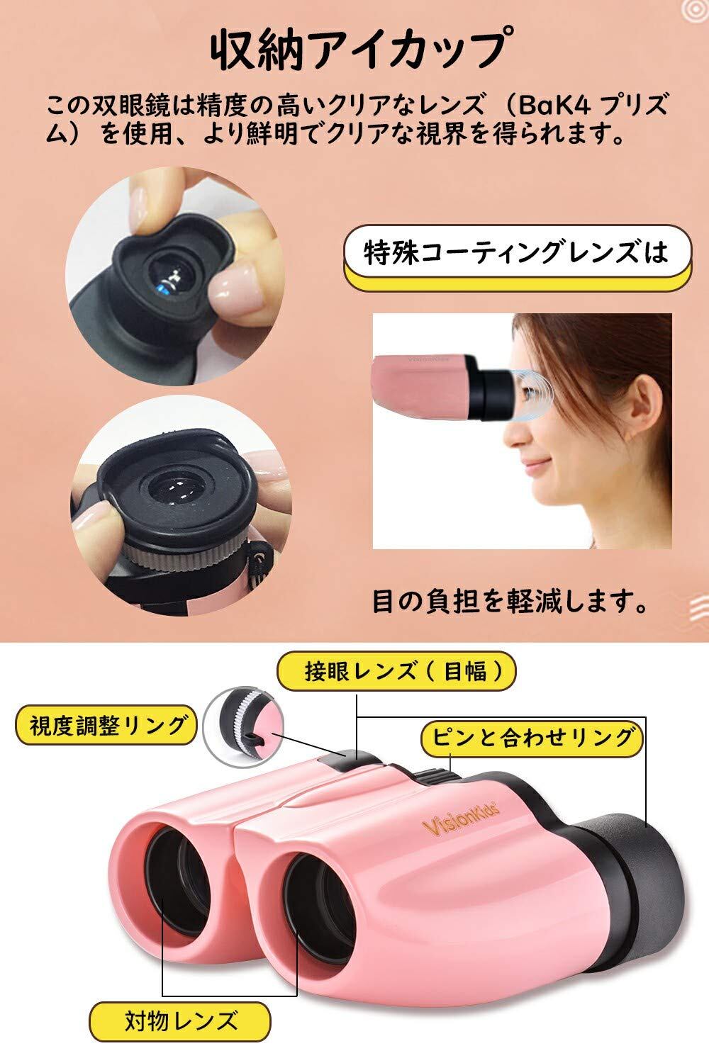 VisionKids 双眼鏡 ライブ用 10倍 10×22 オペラグラス 双眼鏡コンサート 観劇用 防振双眼鏡 軽量 女性 子供用双眼鏡 高性能 センターフォーカス 収納ケース 日本語取扱書付き ピンク JP101