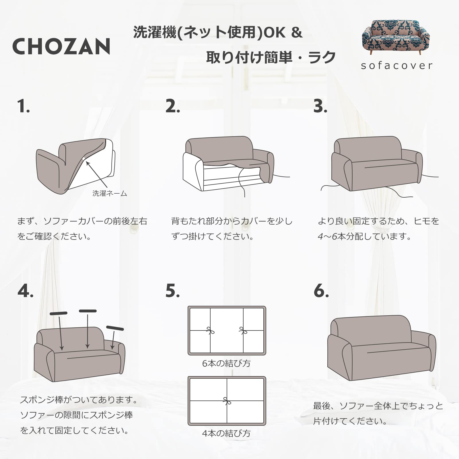 【装着簡単】春夏秋冬全シーズン通用、どんなソファーにもフィット、伸縮するストレッチ素材を使っている装着簡単なソファーカバーです。女性の力でも簡単に取付られ、お部屋の模様替えが簡単に出来ます。
