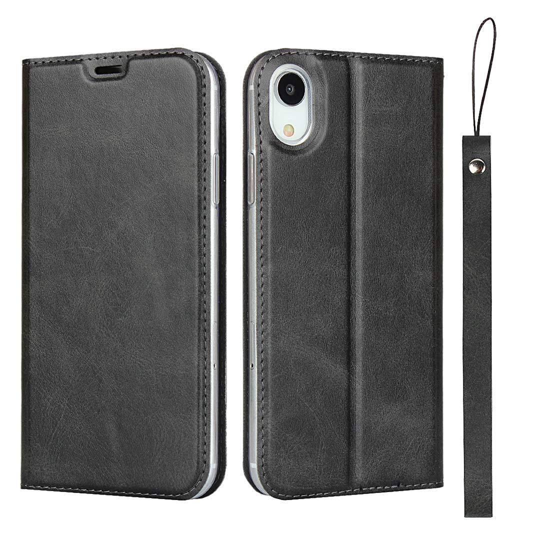 for iPhone XR ケース iPhone Xr 手帳型ケース 携帯カバー PUレザー スマホケース カード収納 スタンド機能 衝撃吸収 ストラップ付き マグネット式 アイフォンXR ケース 全面保護カバー 軽量薄型 ワイヤレス充電対応 耐衝撃 ブラック