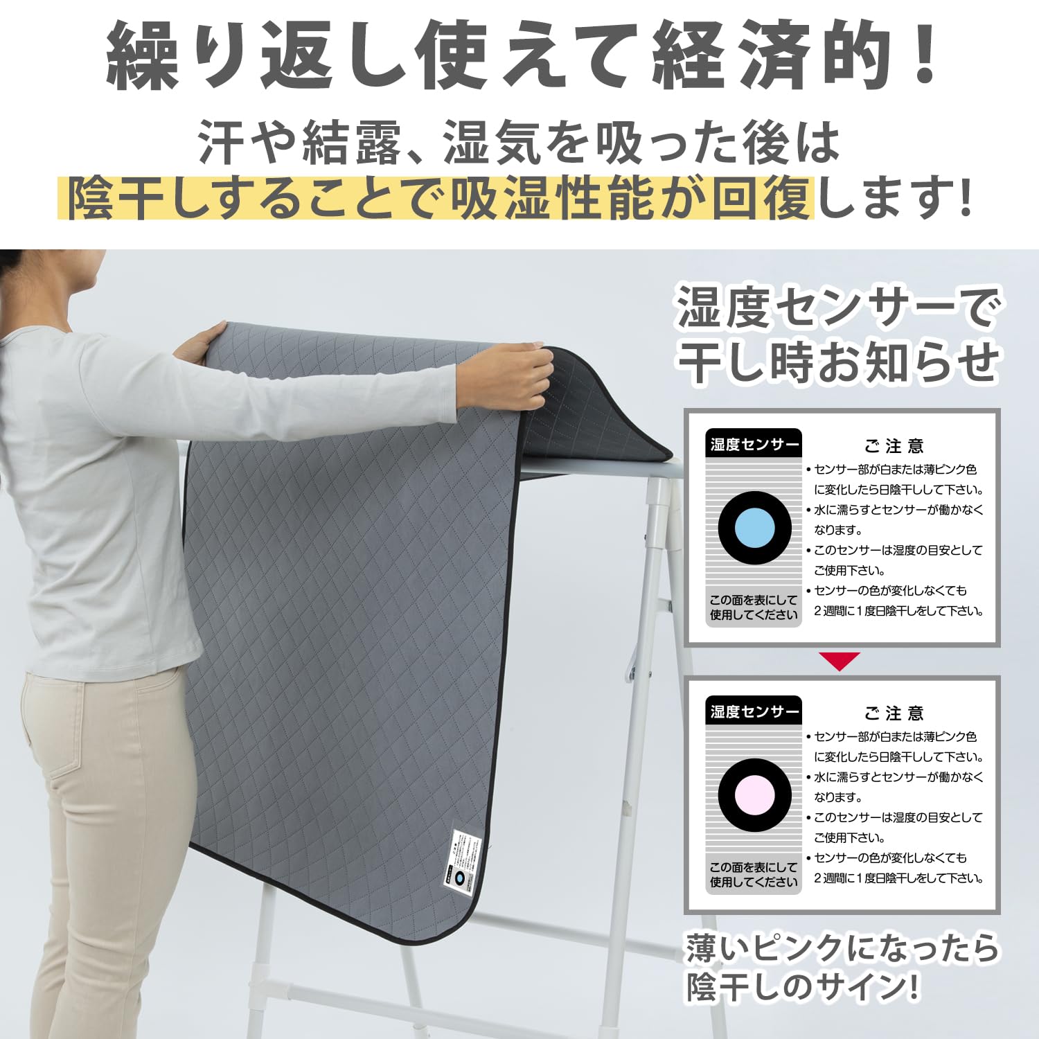 アストロ 除湿シート シングルサイズ用 グレー 活性炭&珪藻土入り 寝具用 吸湿マット 活性炭で消臭 珪藻土で吸湿 防ダニ 防カビ 結露防止 湿気取り 布団カラッと 汗や湿気を吸収して快適に睡眠 湿度センサー付き 615-44