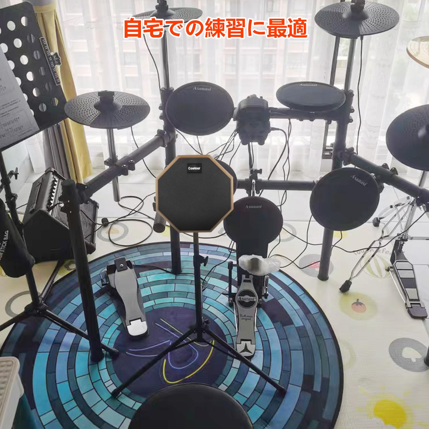 用途:このドラムパッドセットは、音を出さずに実際にドラムを叩いているように基礎練習ができるので、正確なリズム感やスティックテクニックを身につけることができます。自宅練習、リハーサルスタジオ、ライブ前のウォーミングアップに適しています。