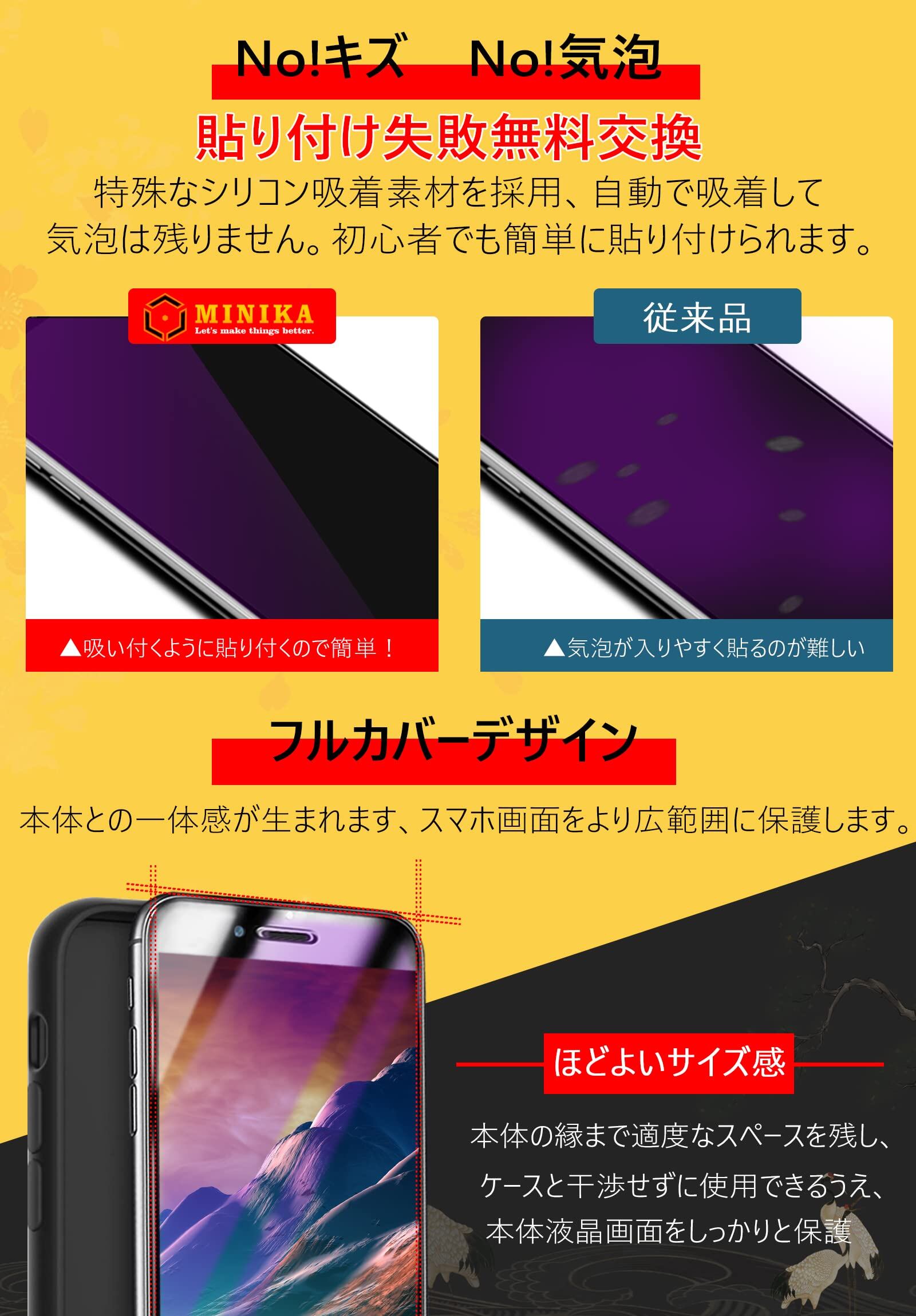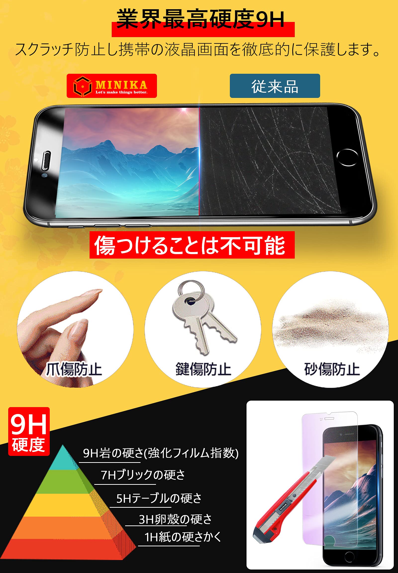 【保護力3倍Up】MINIKAのいphoneSE2 強化ガラスフィルム 一般的な製品に比べ3倍以上の保護力があり、画面の破損を最低限まで抑え、衝撃を受けても割れにくい。優れた耐スクラッチ性能:高硬度のフィルムが日常的なスクラッチから守り、傷を付きにくくします。