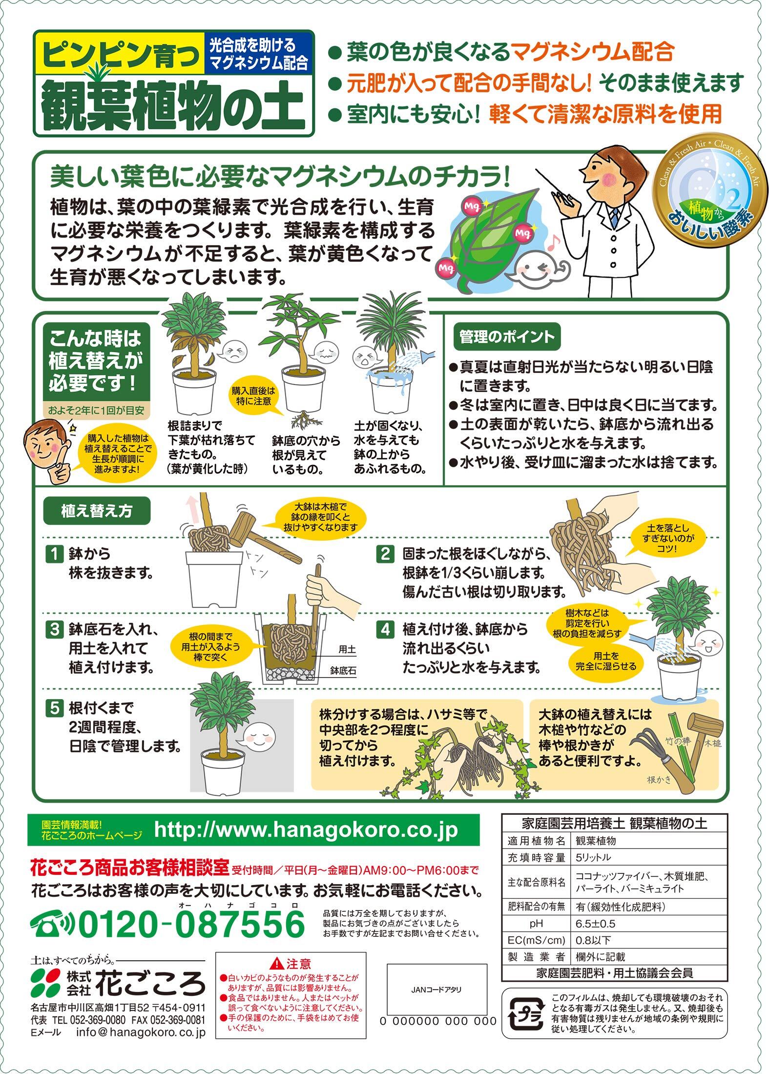 花ごころ 観葉植物の土 マグネシウム配合 5L