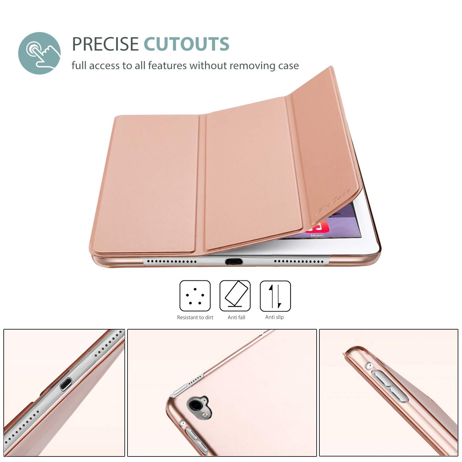 シンプルがクラシックのデザイン;開口部が精確的ですべての機能へ自由にアクセスできます(カメラ、スピーカー、ポートなど)。ご注意:スマートキーボード機能をサポートしません。