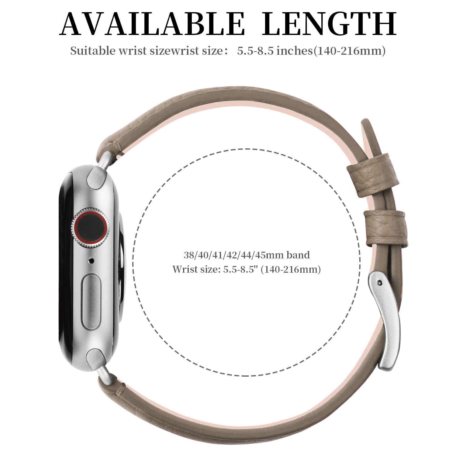 アップルウォッチ バンド Apple Watch バンド アップルウォッチベルト 本革 装着簡単 保護ケース付き レディース メンズ 1/2/3/4/5/6/7/8/9/SE/SE2/Ultra/Ultra2シリーズ対応(38mm 40mm 41mm、エレファントグレー+シルバーバックル)