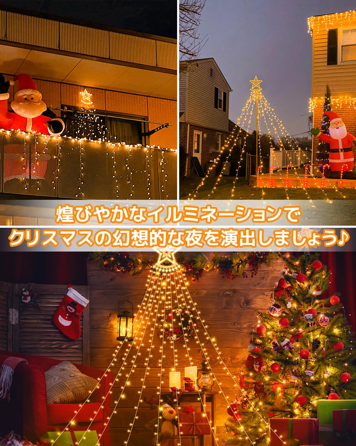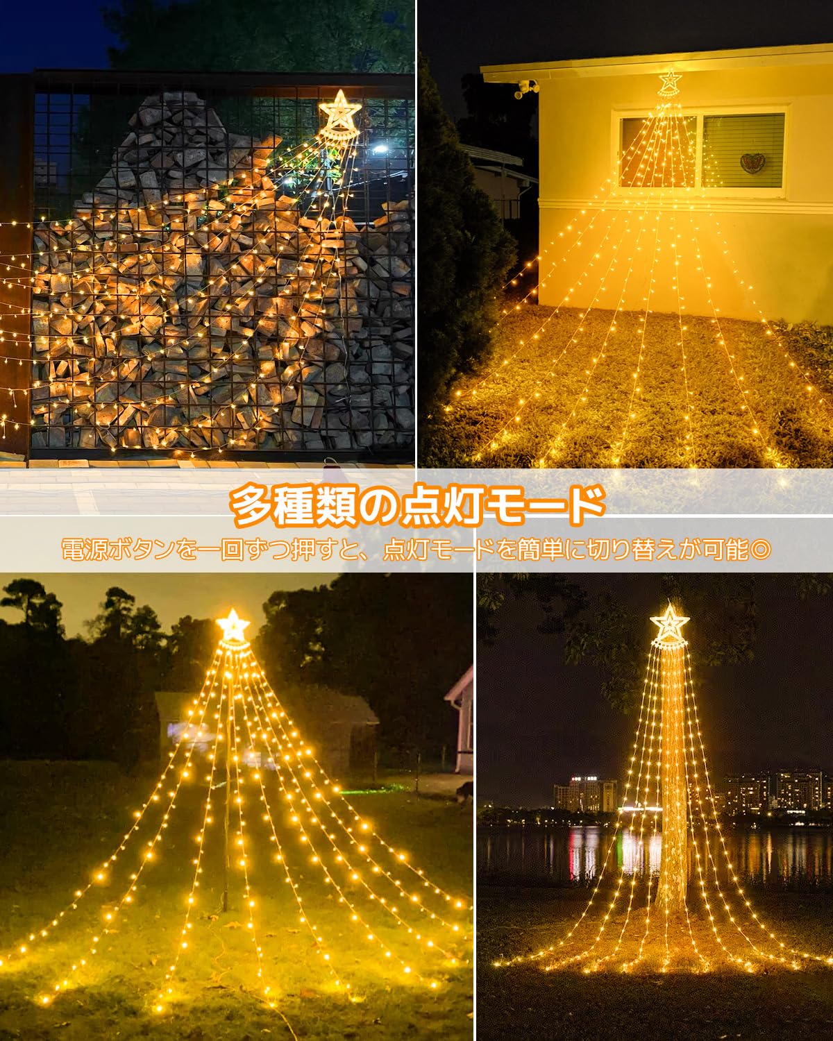 ✨【点灯記憶装置機能で快適】電源を抜いても前回のパターンから点灯するメモリー機能付きなので、消灯しても次の日も再度同じ点灯パターンで光らせることができます。お好みの点灯パターンをお楽しみ頂けますクリスマスツリーや庭木・樹木やフェンスへの飾り付けはもちろん、室内の装飾や結婚式・パーティーでの演出など、幅広くご利用できます。もちろん、冬だけのイルミネーションとしてではなく、年間を通したガーデンライトとしてもおすすめです。