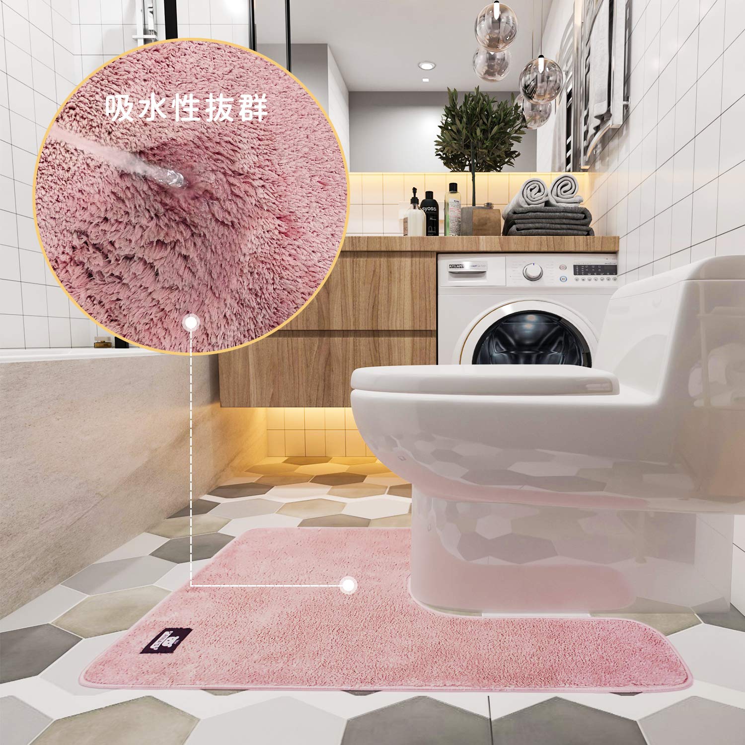 みみなが(ピンク, 90*60cm) ふわふわ/吸水性いい ロング 滑り止め おしゃれ トイレカーペット
