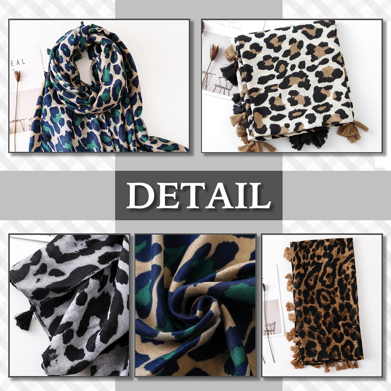 なめらかな 肌触りで おしゃれな レディース 大判 ヒョウ柄 アニマル デザイン アフガン フリンジ スカーフ。
