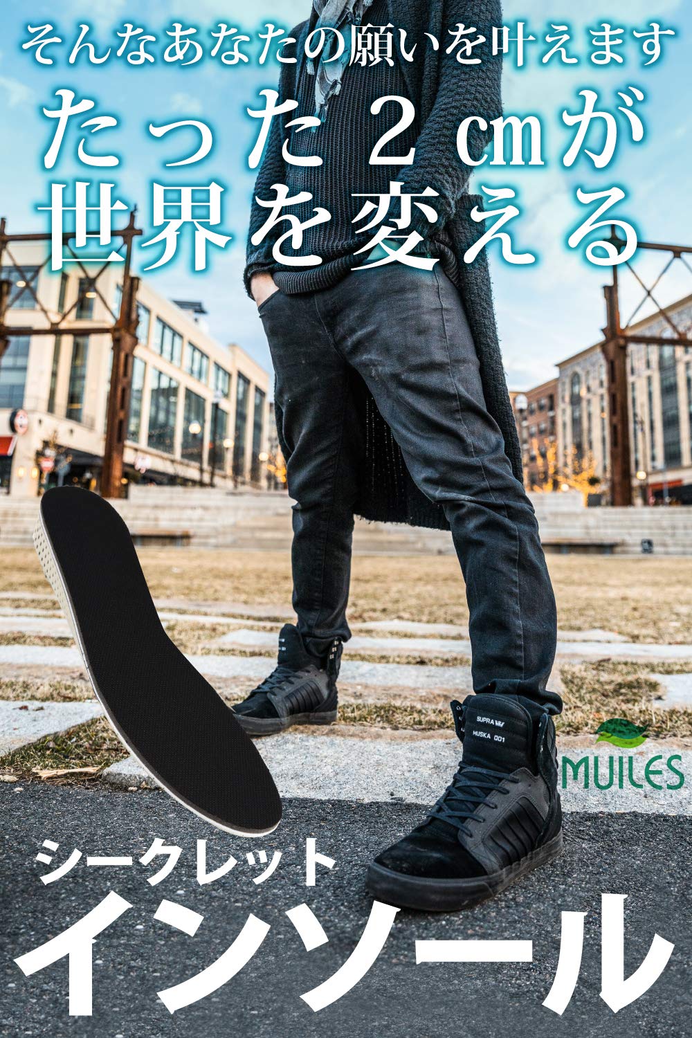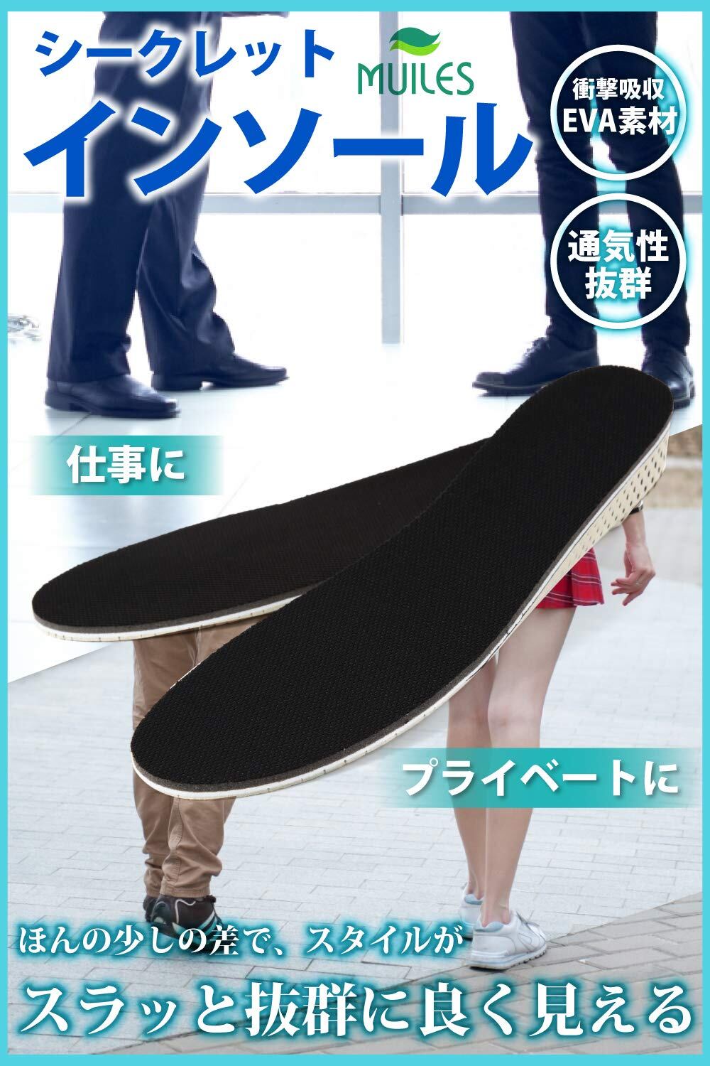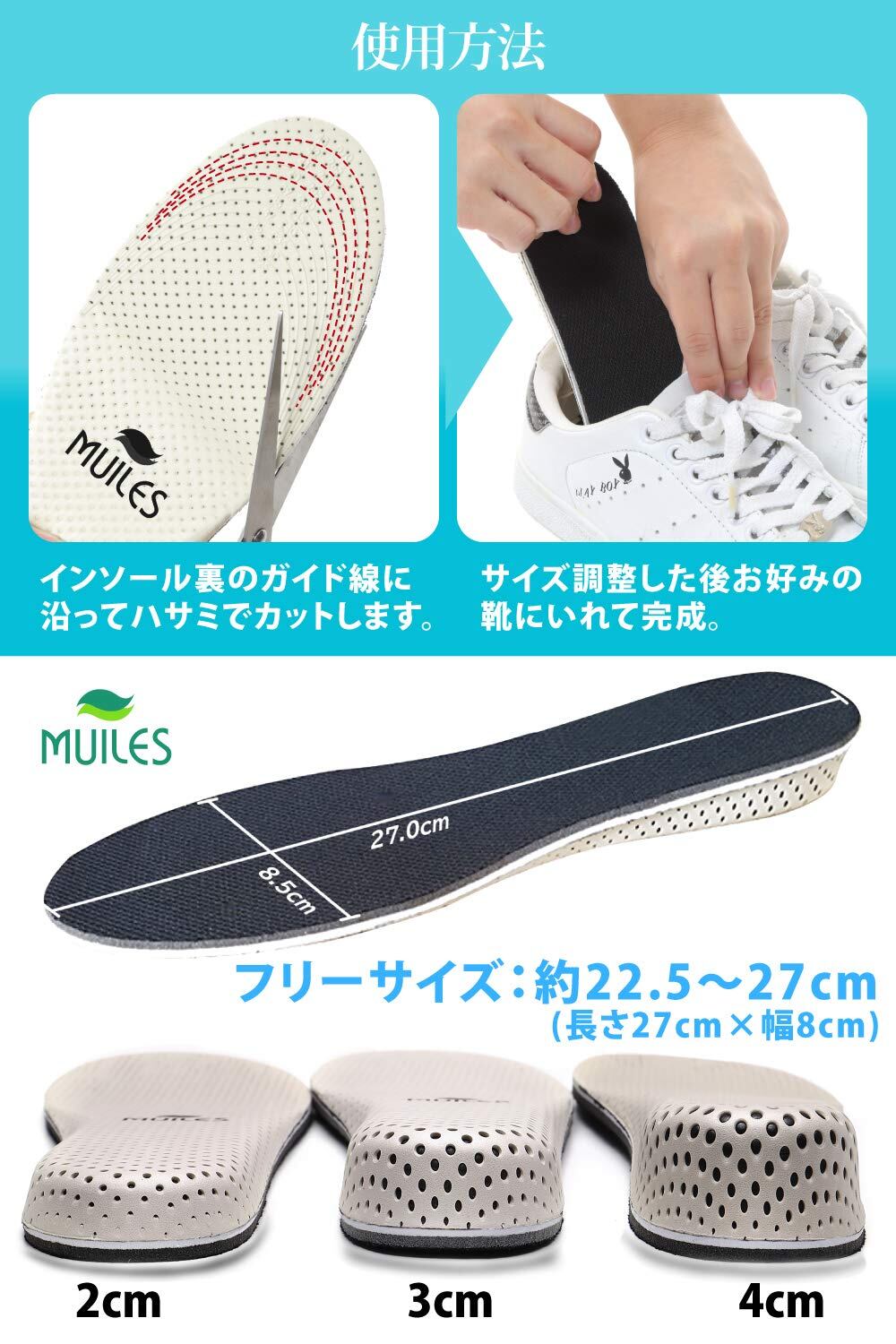 シークレットインソール 高さ3サイズ 【2cm/3cm/4cm】 インソール 身長アップ サイズ調整 (22.5cm~27.0cm) 通気性 疲れにくい 男女兼用 Muiles (2cm×1組)