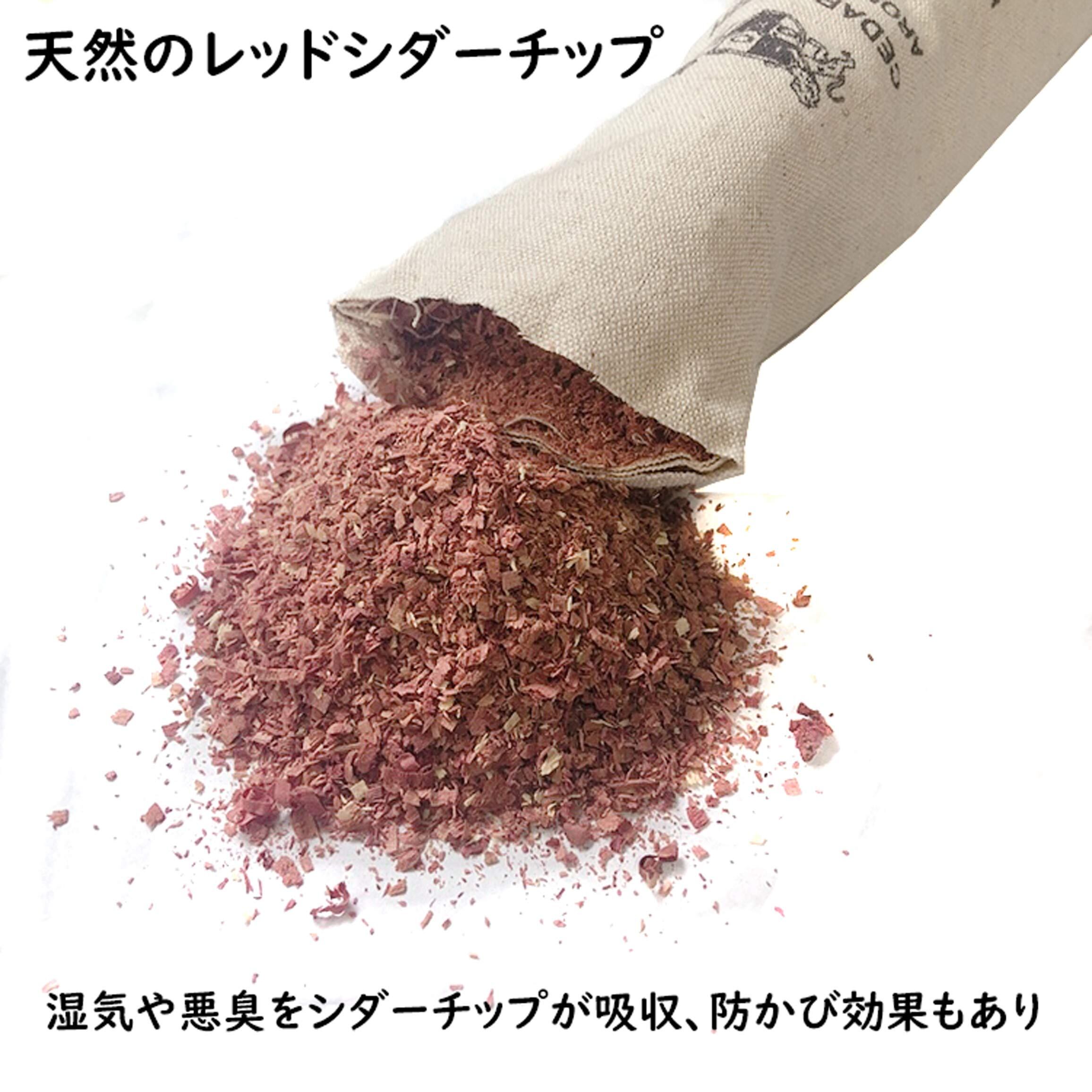 素材:レッドシダーチップ、リネン生地 (チップだから表面積が多い分、効果は高い)