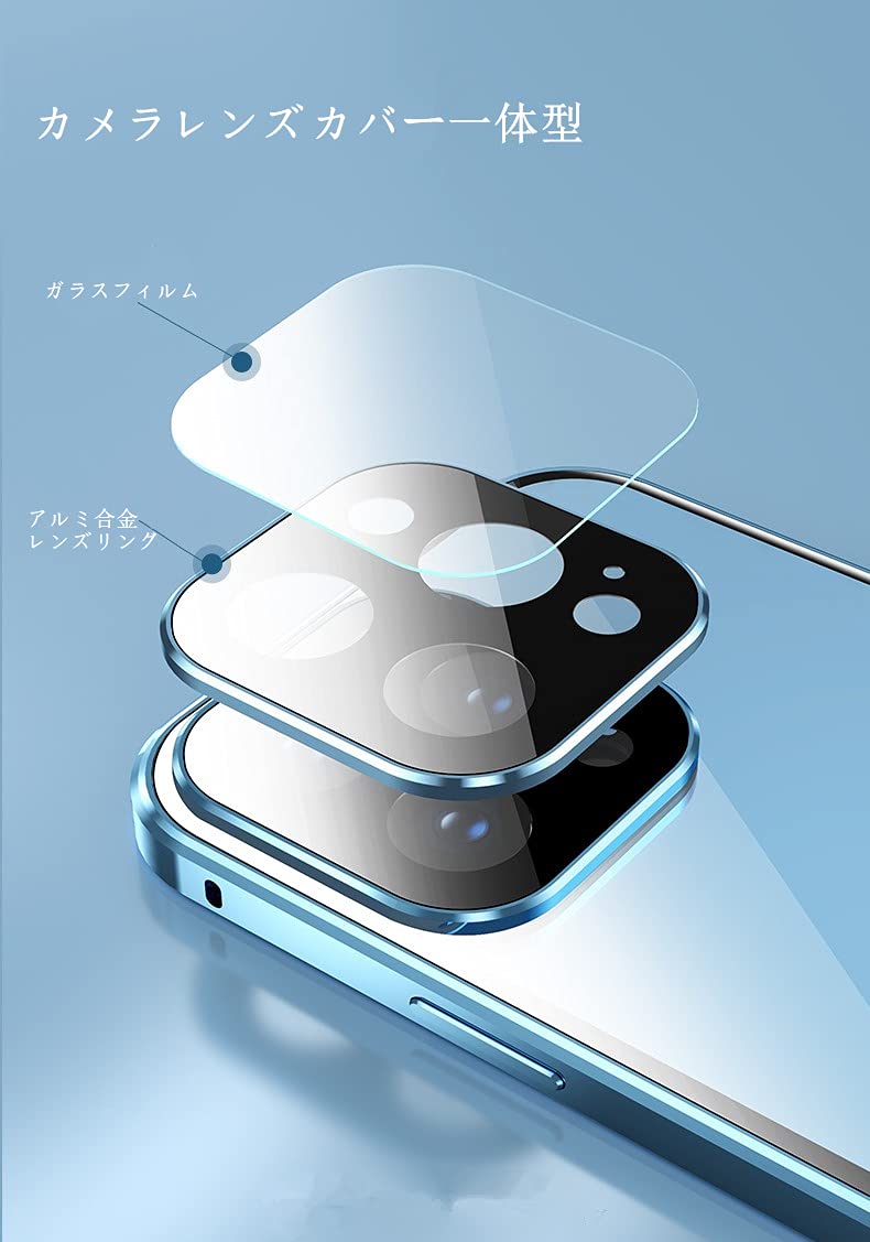 覗き見防止 iPhone 13 ケース 前後 両面 ガラス マグネット式+ 新技術 安全ロック アルミ バンパー レンズ保護カバー 360°全面保護 強化ガラス 磁石 高感度 金属フレーム アルミニウムバンパー 全面カバー ロック機能 人気 (iPhone13 深ブルー)