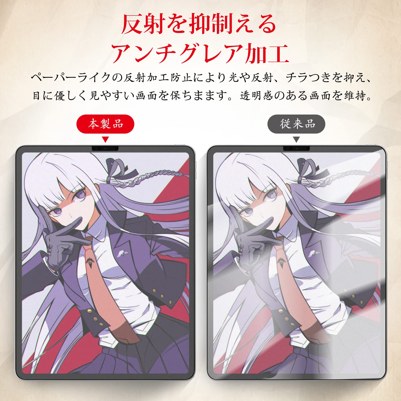 【高感度・指紋防止】0.17mm極薄の厚さで仕上がり、高感度処理を加え、デバイス本来の反応感度を損 なわず、スムーズにタッチできます。また、ガラスフィルムより、スライドせず、マットな表面でスクリーンに書いても滑 りません。更に、撥油加工を施し、指紋や汚れが付きにくくなり、付着しても簡単に拭き取れます。