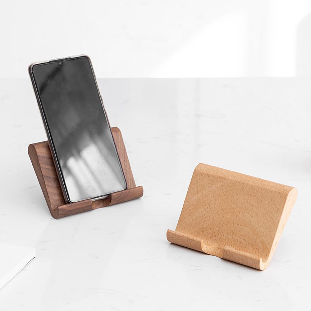 ✩選べる無垢材:ブナ材とウォールナット材から選べる木製スマホスタンド。