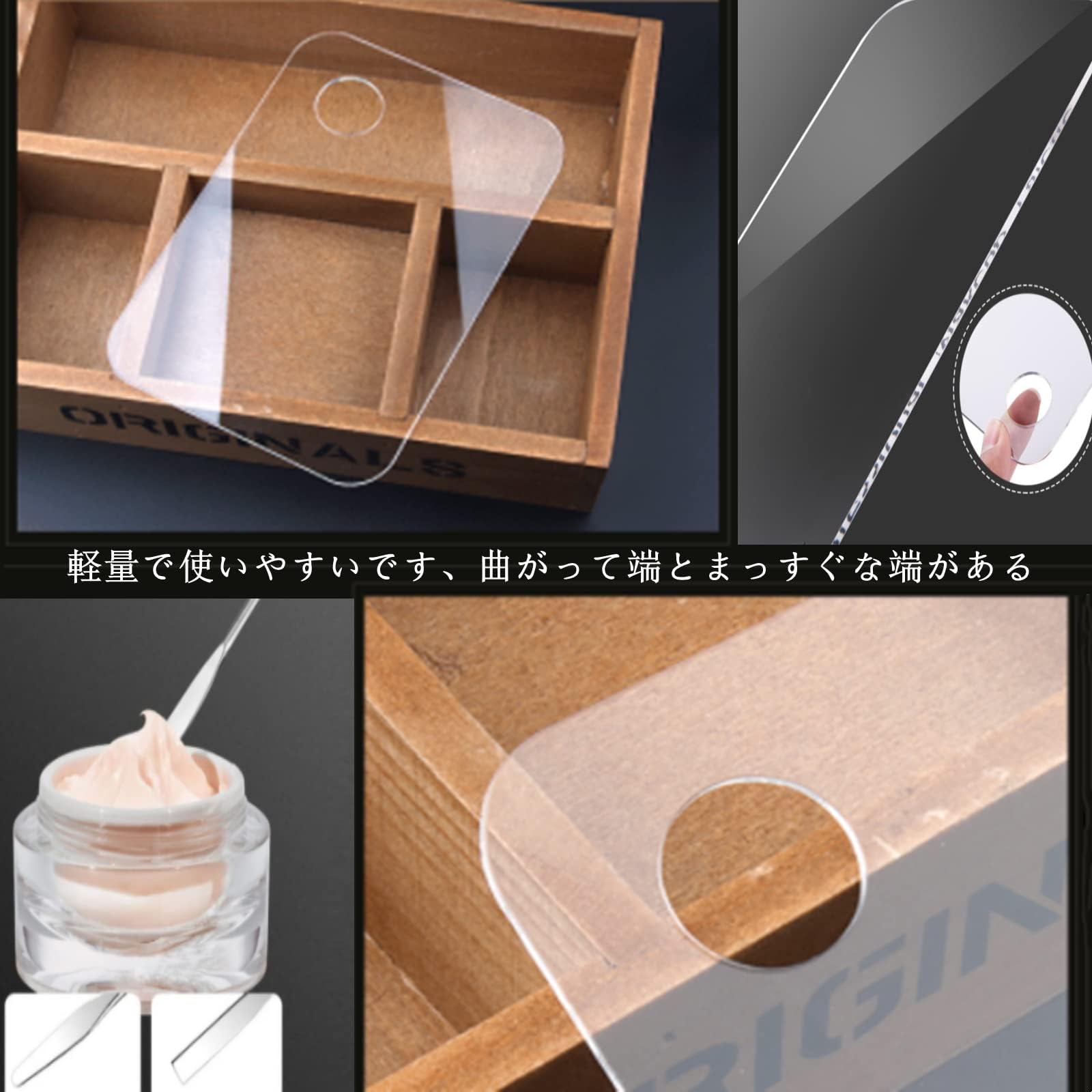 【商品内容】: パレットサイズ(約):15x10cm 、材質:プラスティック、 カラー:クリア、ステンレス製 スパチュラ付き 。