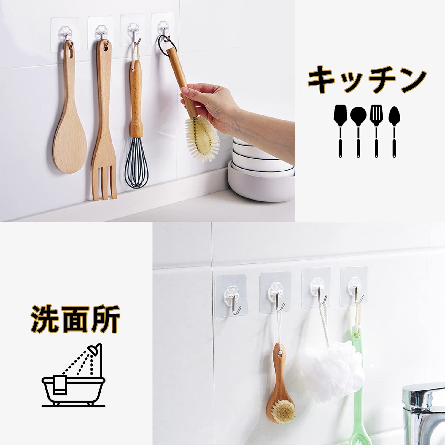 フック 粘着 壁掛けフック 穴が目立たない 10個入り 超強力 フック シール 壁 透明タイプ 耐荷重8kg はがせる 穴開けない 賃貸 繰り返し使える キッチン お風呂 バスルーム 粘着 引っ掛け 壁掛け (10個入り)
