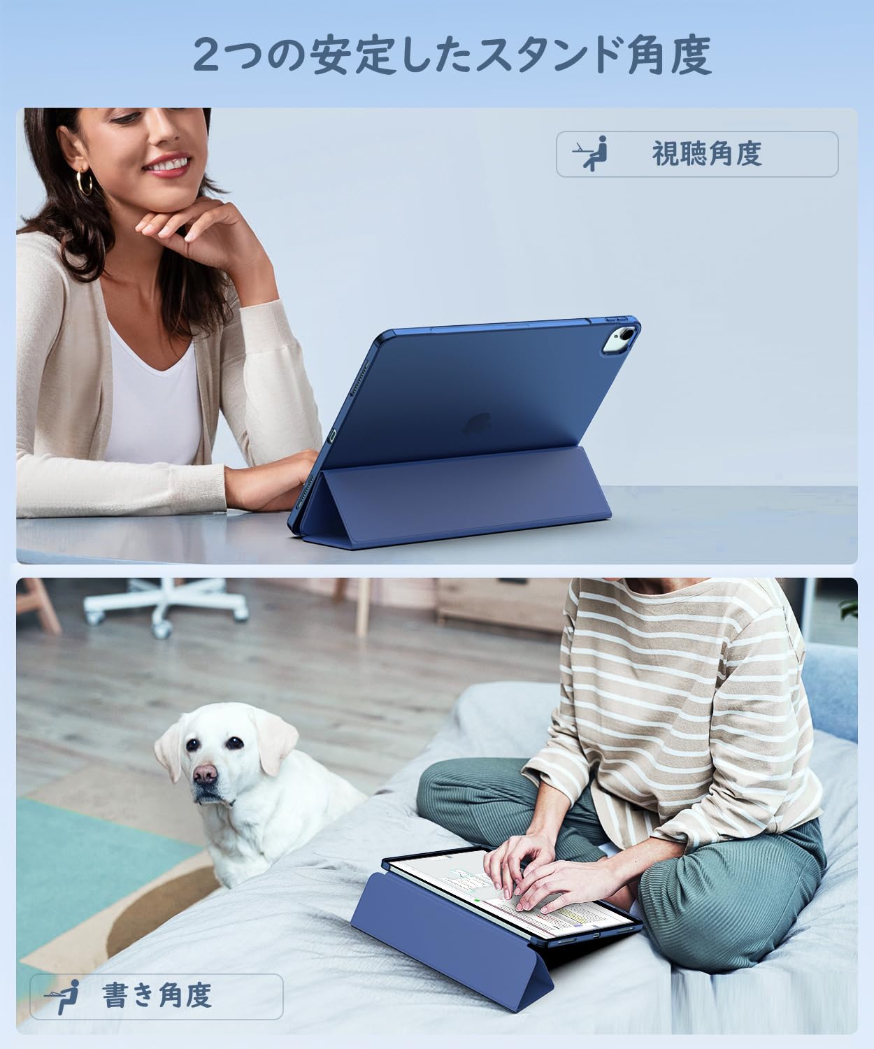 iPad Air 13インチ M3/M2 ケース 2025/2024 Dadanism iPad Air 13 ケース M3 2025年新モデル iPad Air 13インチ M2 カバー 2024 アイパッド エア エアー Air 13 オートスリープ機能 薄型 PU+TPU 三つ折り スタンドケース 半透明 ソフト マイクロファイバー裏地 耐衝撃 適格請求書発行可 NavyBlue