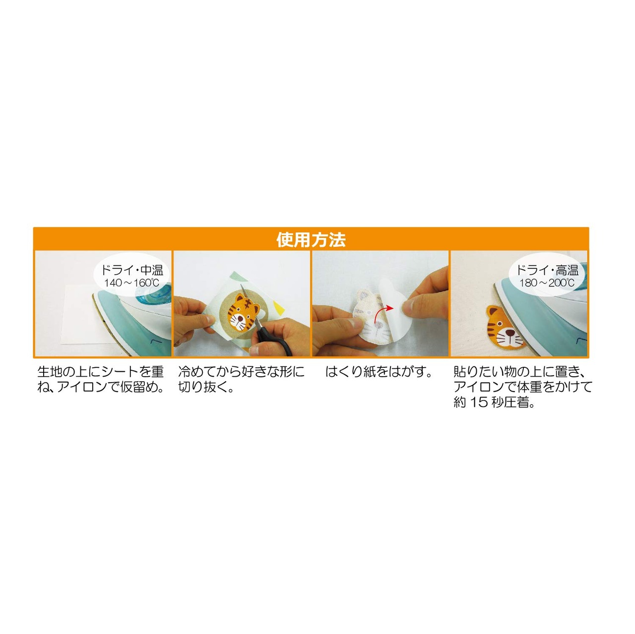 オリジナルのアップリケや補強・補修に使える熱接着シート。洗濯・ドライクリーニングOK。