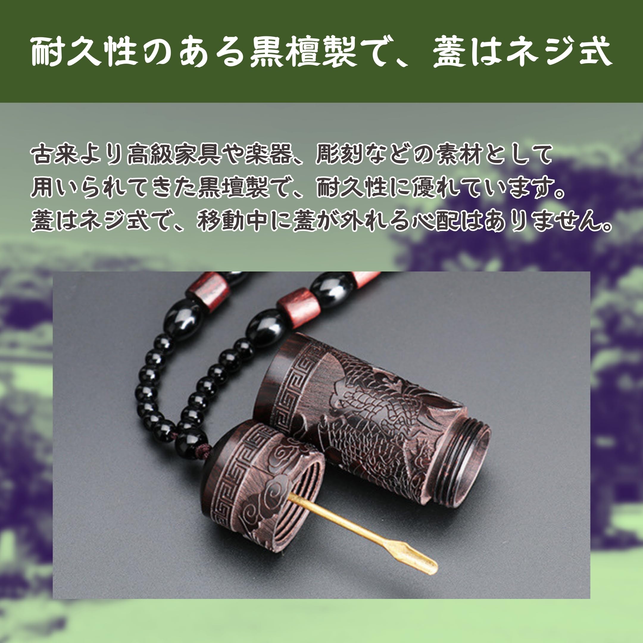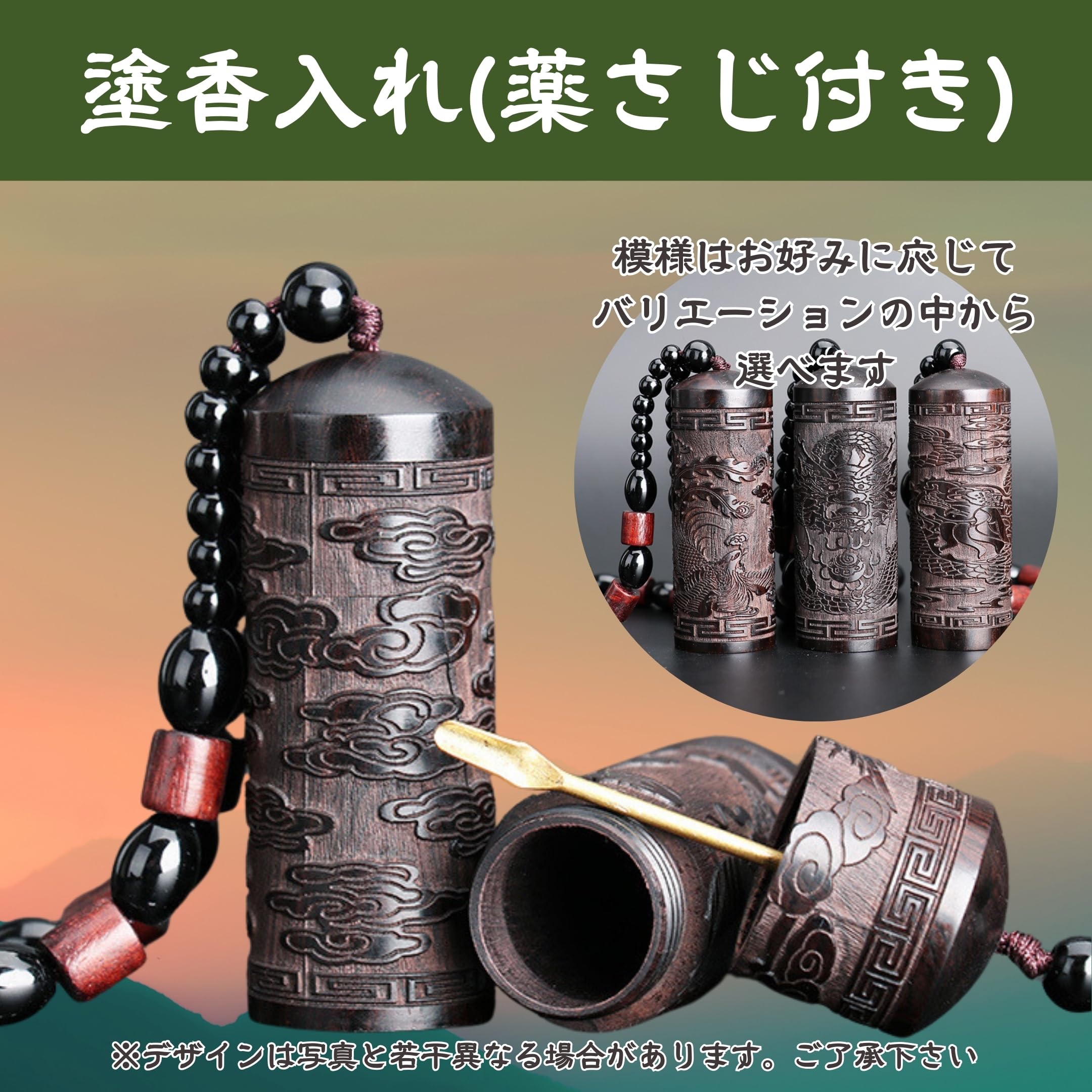 [HYmish]塗香入れ 薬さじ付き 直径2.4cm 塗香 薬さじ付き コンパクトサイズ 参拝 巾着付き 黒檀 ストラップ付き 般若心経
