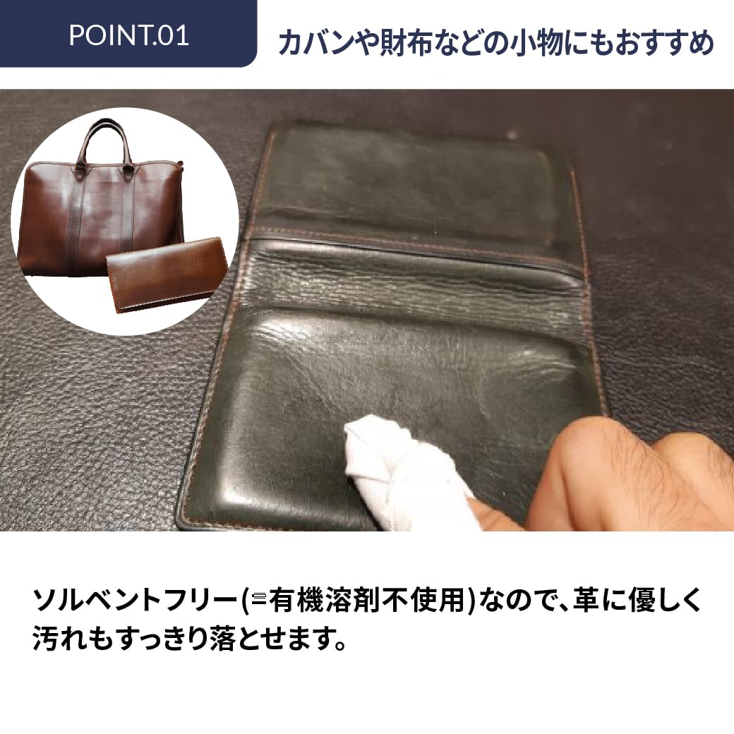 業界初! ソルベントフリーのクリーナー新登場! ! 天然成分(オリーブオイル・ホホバオイルなど)のみで構成されているため、高級靴が好きな方だけでなく、女性にもおすすめです。革に優しく汚れもすっきり落とせる有機溶剤フリーのナチュラルクレンジングをお試しください。■用途:スムースレザー(一般的な表革)の靴、パンプス、ブーツ等の表面についた汚れや、油、ワックス、汗(塩分)などを除去します。■タイプ:水性タイプ ボトル■容量:100ml■原産国:日本製■注意:用途以外の製品には使用できません。必ず目立たない部分でテストしてからご使用下さい。