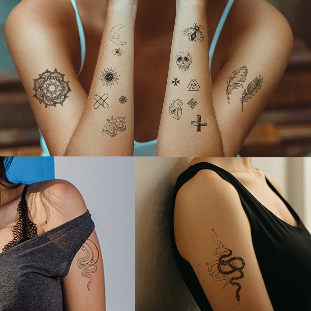330+ リアルなブラック テンポラリー タトゥー 大人用 60ピース ヴィンテージ スケルトン スネーク タトゥー デザイン 王冠 矢印 日月 星 ライン 花 蝶 羽 無限の愛 女性用タトゥーステッカー