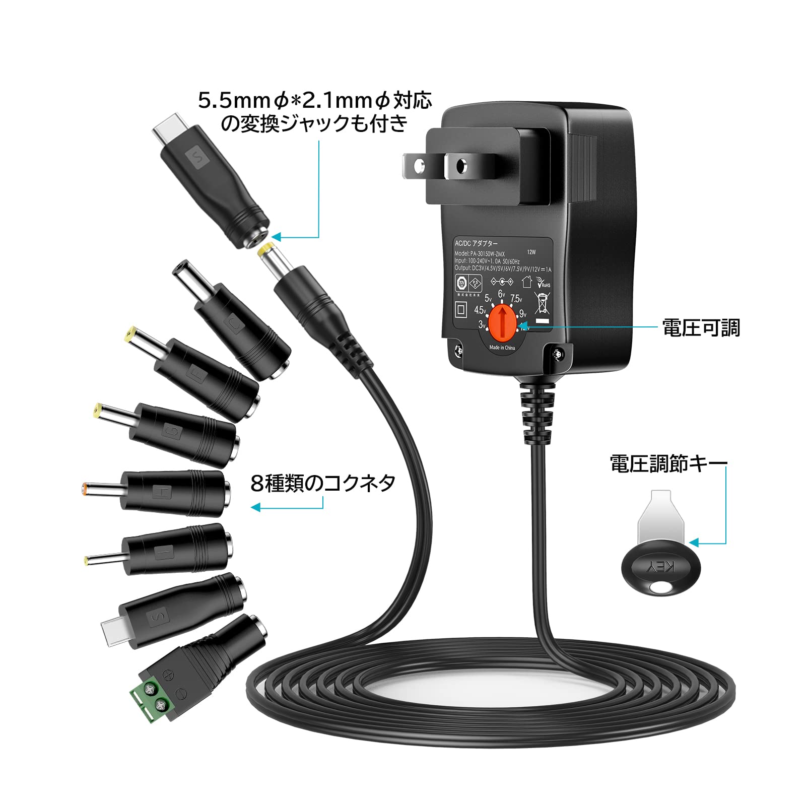「マルチ電圧」入力:AC 100V〜240V 50/60Hz 1000mA、出力:3V 4.5V 5V 6V 7.5V 9V 12V 、 1A(1000mA)max:12W。DC長さ:1.5M。ご注意:給電用電源acアダプターです、電池充電器とは違います!バッテリー充電器ではありません!誤って充電できない。