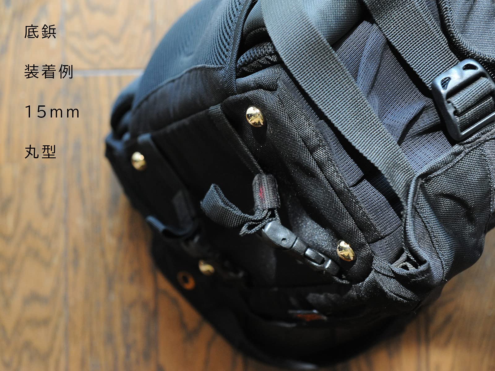 大きなバッグに多めに使ったり、いくつかのバッグに使える10個セットです。バッグやカバンの底を保護したり、外観をアレンジするのにいかがでしょうか。ただ、ネジを締め込んでも3mm程度の隙間ができますので生地の薄いものには底板などを準備ください。