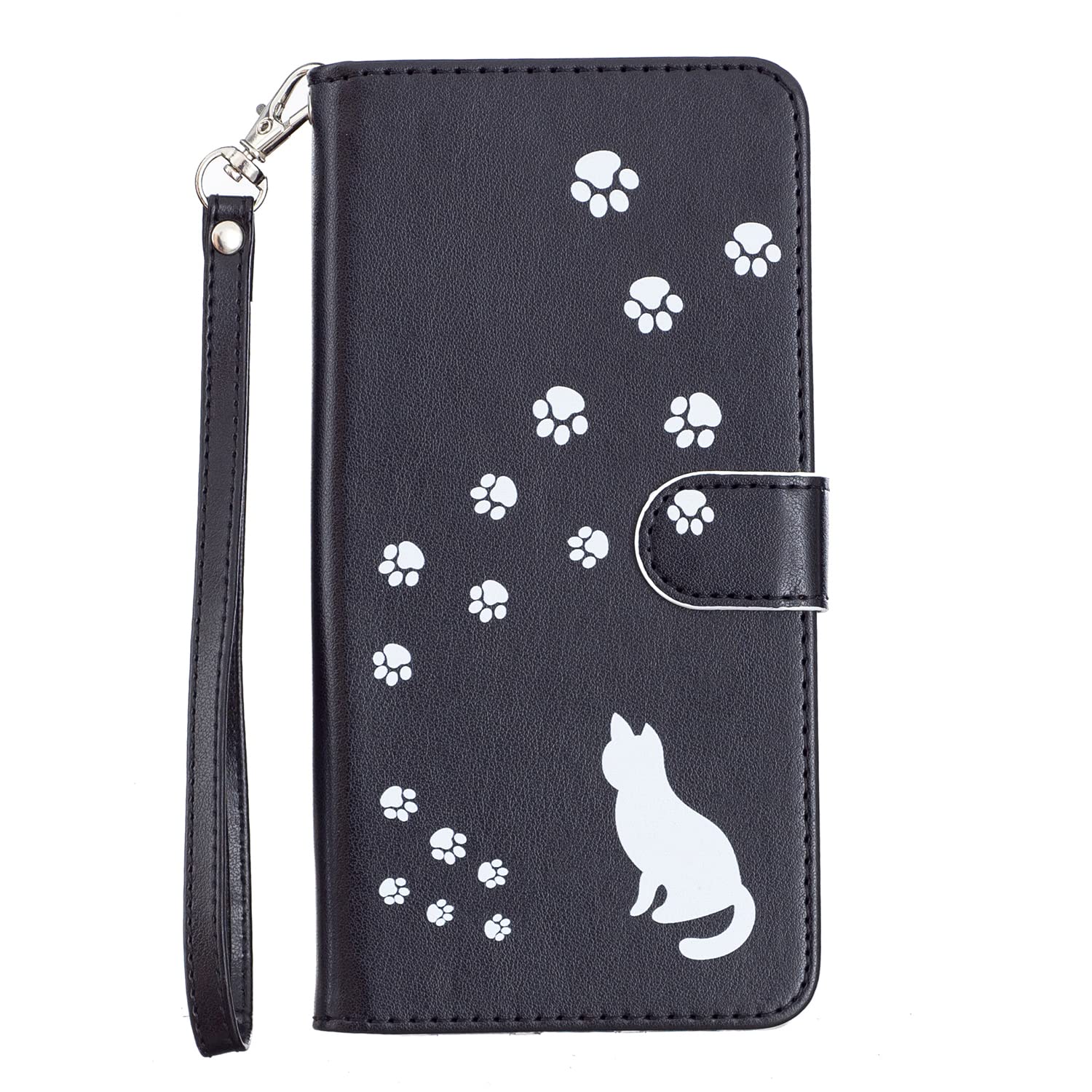 Sony Xperia 10 IV SOG07 SO-52Cケース手帳型 エクスぺリア 10 IV SOG07 SO-52C ケース カバー 手帳型 猫ちゃん 可愛いストラップ付き スタンド機能付き 財布型 スマホカバー マグネット付き カード収納 耐衝撃 全面保護 高級PUレザー 手触りがいい 高質感 汗や指紋防止 マット感 薄型 軽量 (Xperia 10 IV(SOG07/SO-52C) A4-ブラック)