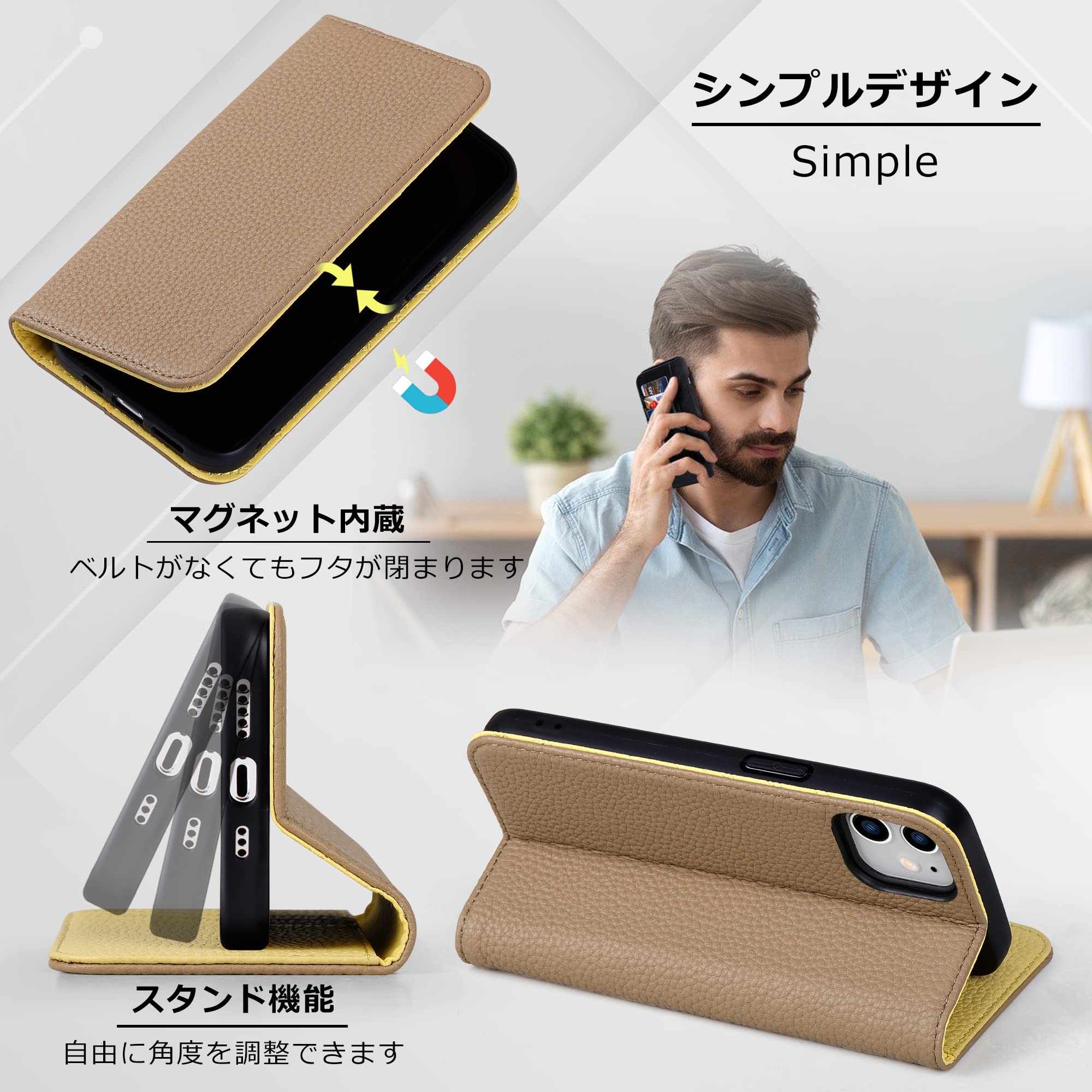 VISOUL iPhone12Pro ケース 手帳型 本革 スマホケース レザー 衝撃吸収TPU素材 アイフォン12 Pro手帳型ケース マグネット式 カード収納 アイホン12 ケース対応 6.1インチ シュリンクレザー iphone 12Pro/12ベージュ レモン