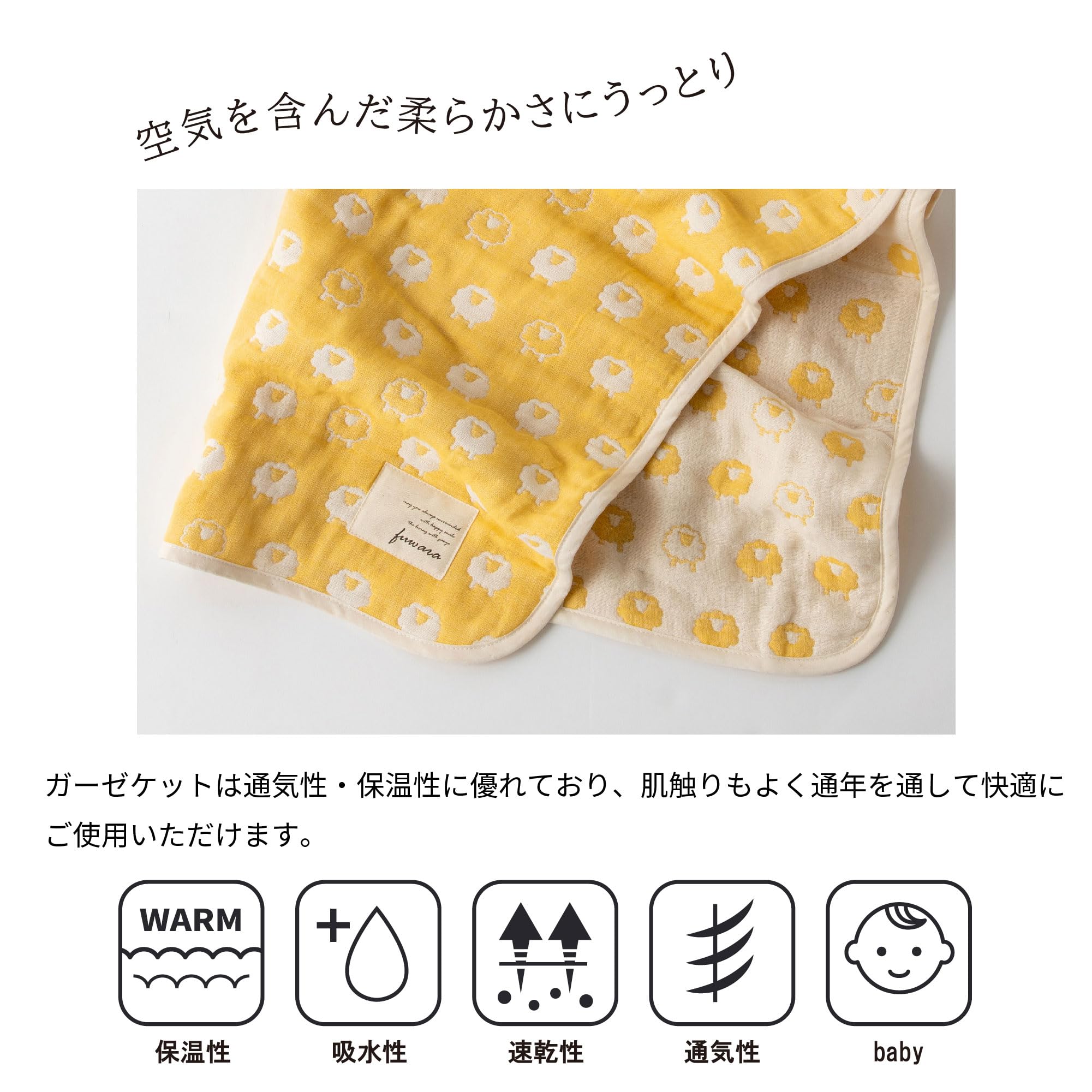 6重織ガーゼ ガーゼケット おでかけサイズ 約50×70cm 日本製 (ひつじ/シトロンイエロー)