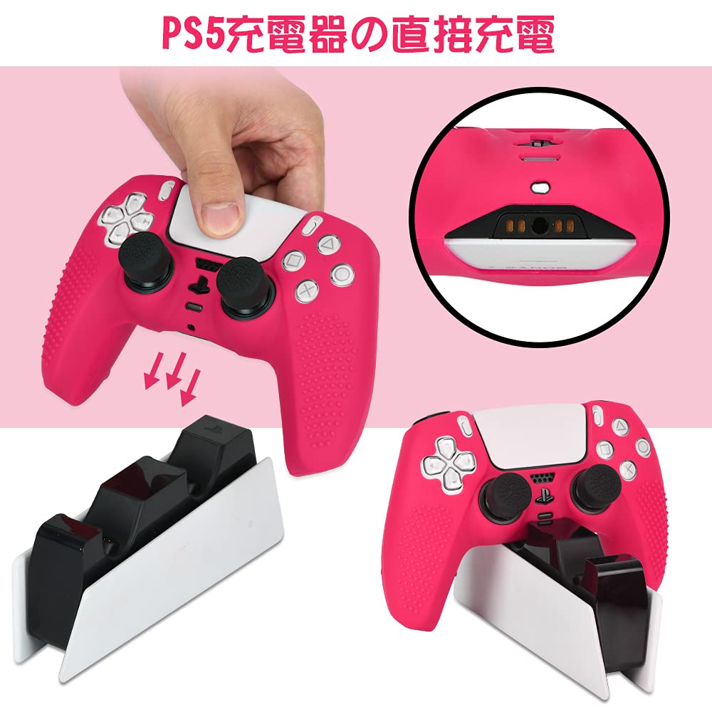 ps5 コントローラー カバー シリコン素材 ps5 カバー コントローラー 傷防止 滑り止め 保護ケース-ローズレッド(スティックキャップ 8個付)