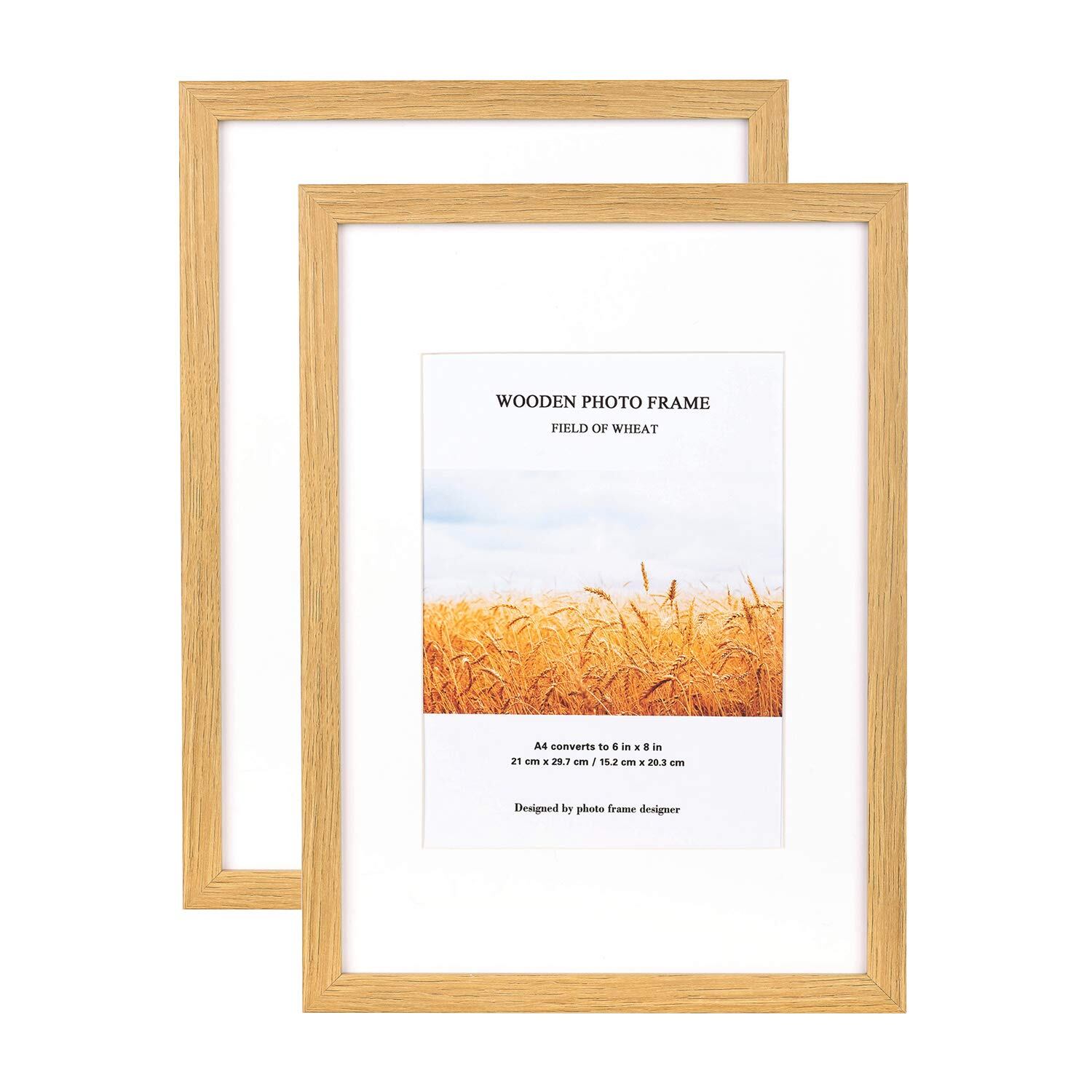 kennethan 額縁 A4 木製 フォトフレーム ガラス 写真フレーム デスクトップまたは壁に置く ナチュラルカラー 2枚セット
