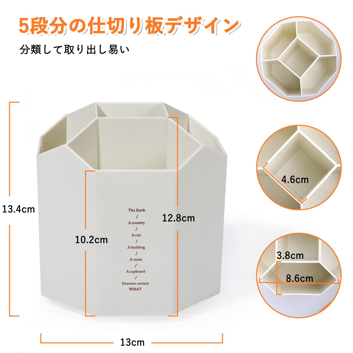 【多機能卓上収納】:オフィス、家庭、学校、ホテル、書斎、寮、リビング、教室、寝室など様々なシーンにご利用でき、欠かせない収納グーズです。ペンやハサミなどの事務系学用品の収納、メイクブラシなどのメイク道具の収納にも最高です。
