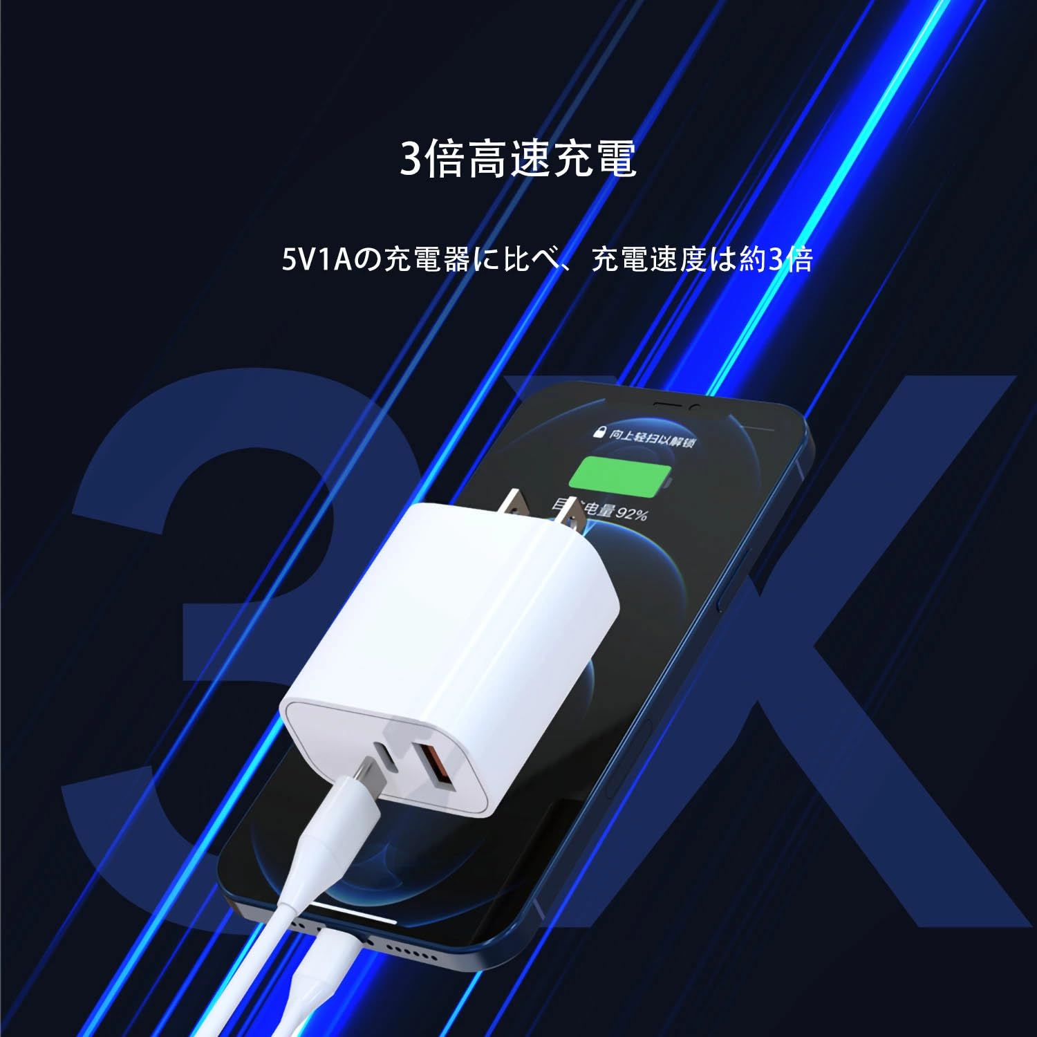 QISI AC充電器 20W 急速充電 type c usb a2ポート QC3.0 PD対応 超コンセント USB C コンセント ACアダプター Type C USB充電器 充電器 タイプc USB 携帯充電器 コンパクト 海外対応 PSE認証済み 充電器 iPhone Android iPad兼用