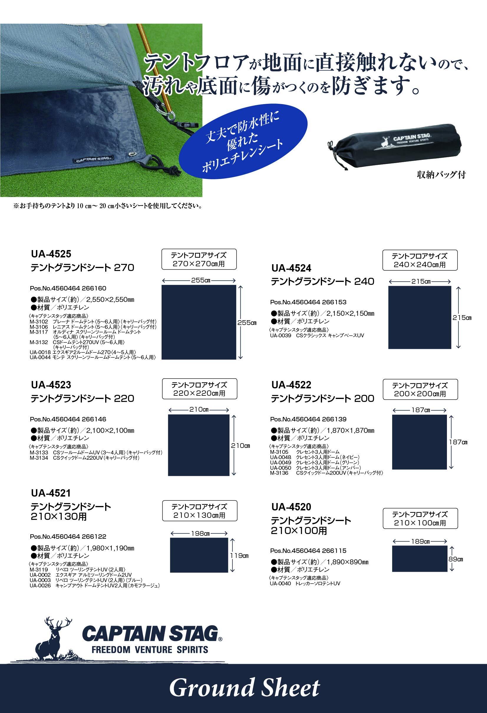 備考:お手持ちのテントより10~20cm小さいシートを使用してください。※テントと同サイズまたは大きいサイズでは、グランドシートに雨が溜まって、テントフロアに侵入する原因になります。