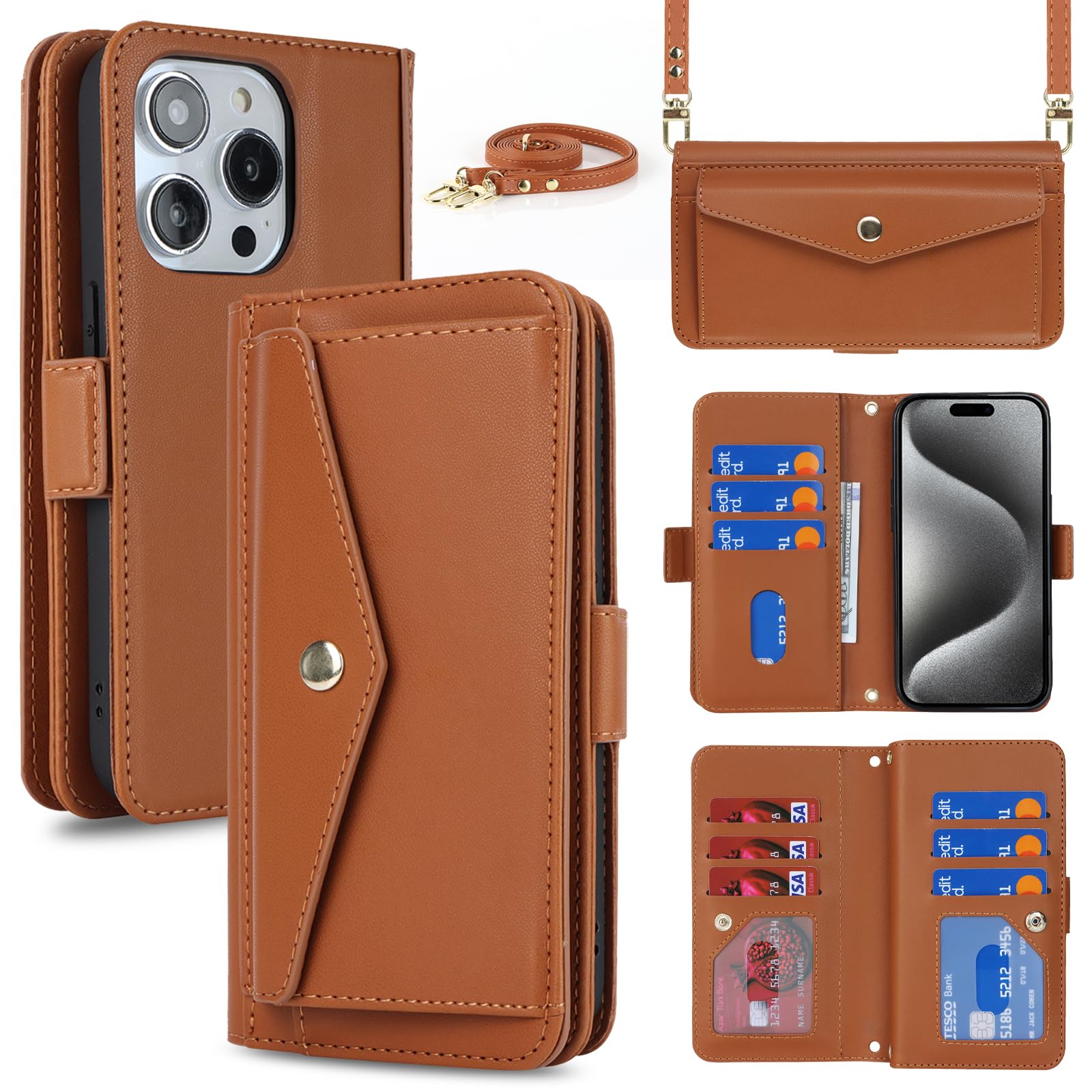 for iPhone 15 Pro ケース ショルダー クロスボディアイフォン 15pro 留め具 肩がけ 首掛け 斜め掛け カードケース for iPhone15 Pro 手帳型 携帯 ケース case 財布型 カード収納 小銭入れ PUレザー 6色 レッド