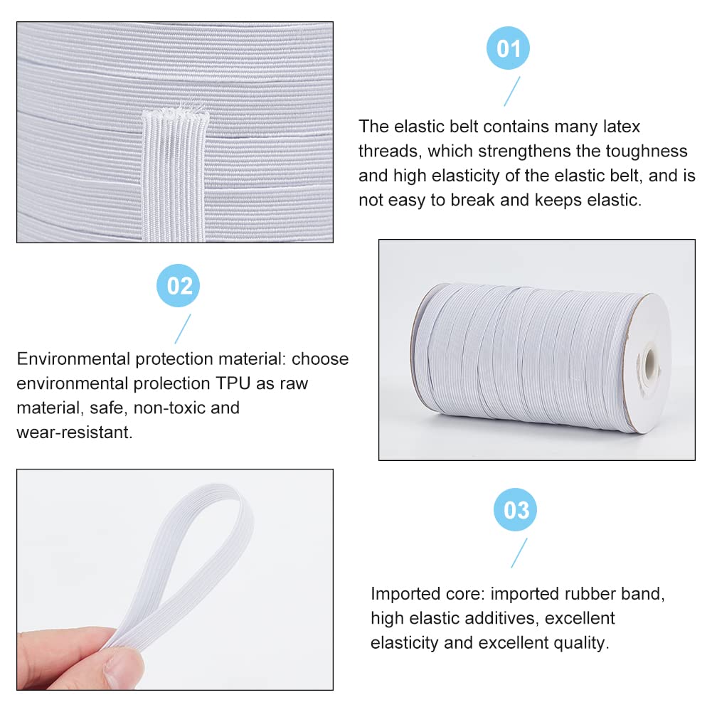 PH PandaHall 約100ヤード ゴム 幅10mm 織りゴム 洋裁ゴム ゴムベルト ポリエステル製 弾性バンド ゴムコード 編みタイプ 伸縮可能 ストレッチバンド 弾力コード 裁縫材料 手作り素材 手芸用品 ホワイト