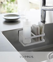 置き場所に困るスポンジ2個と食器洗剤ディスペンサーを一括収納。