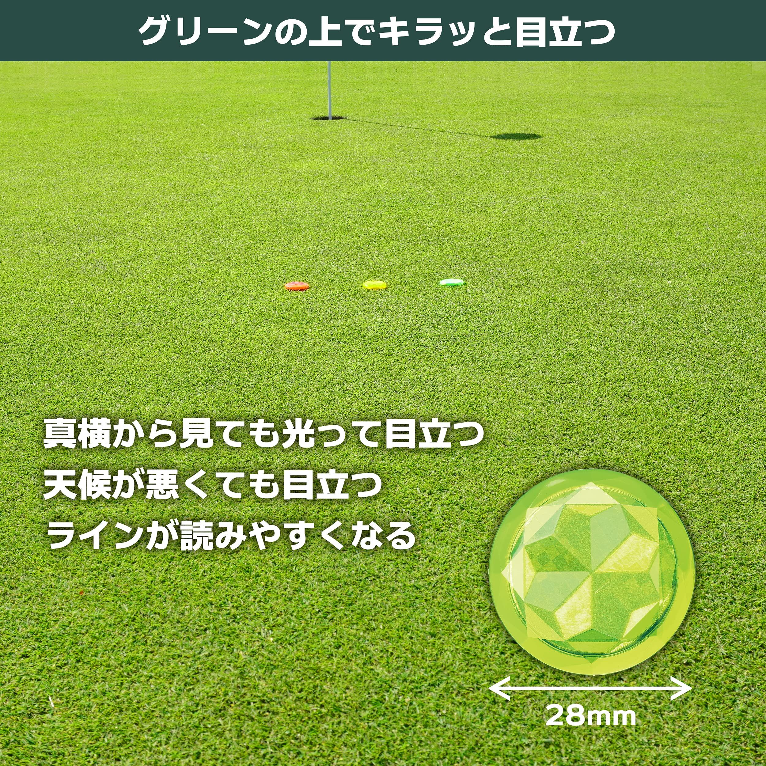 太陽の光を利用してグリーン上でキラッと目立つマーカー