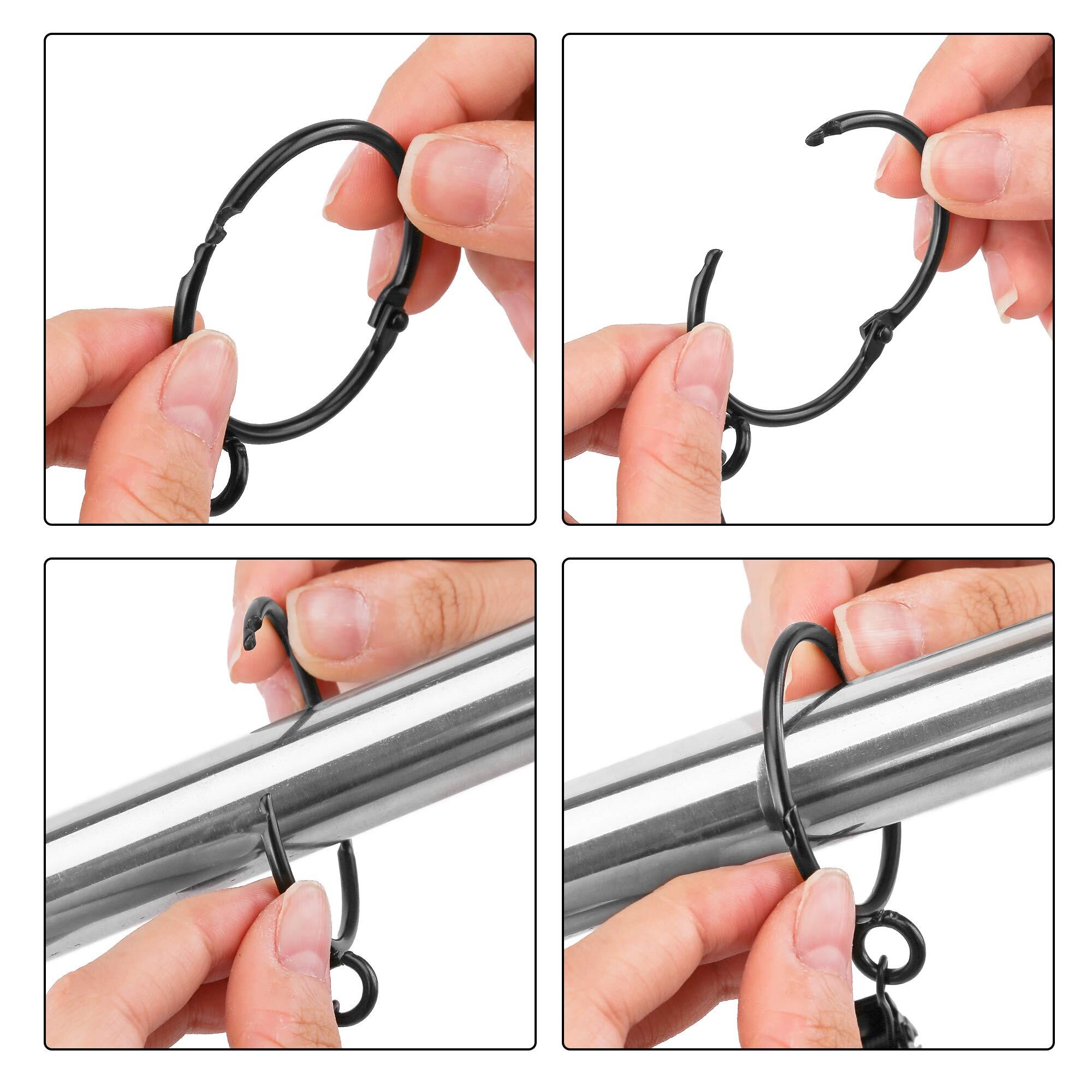 KaiYiカーテンクリップリング カーテンリングフック 開口設計 内径38mm 取付簡単 スチール製 20個セット ブラック