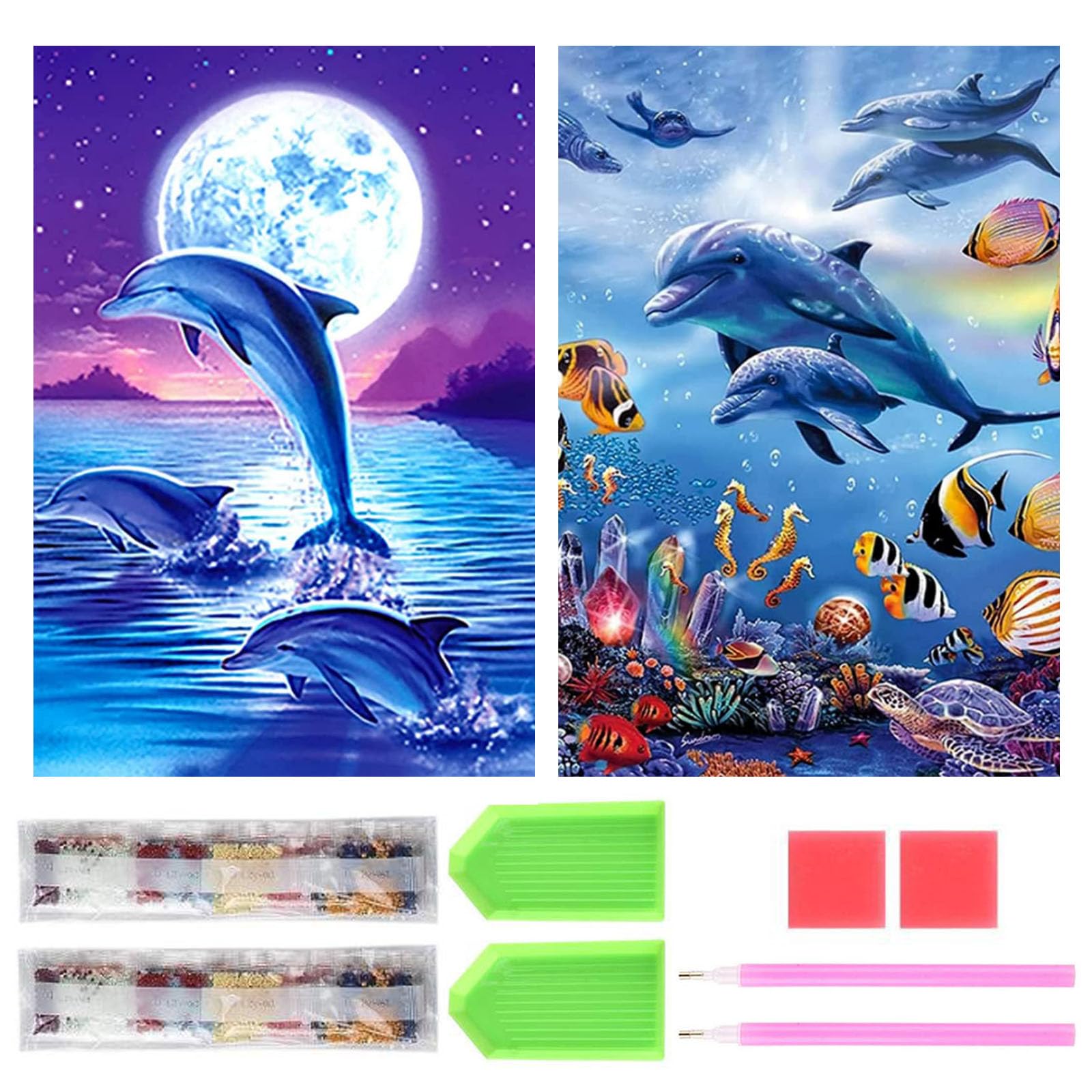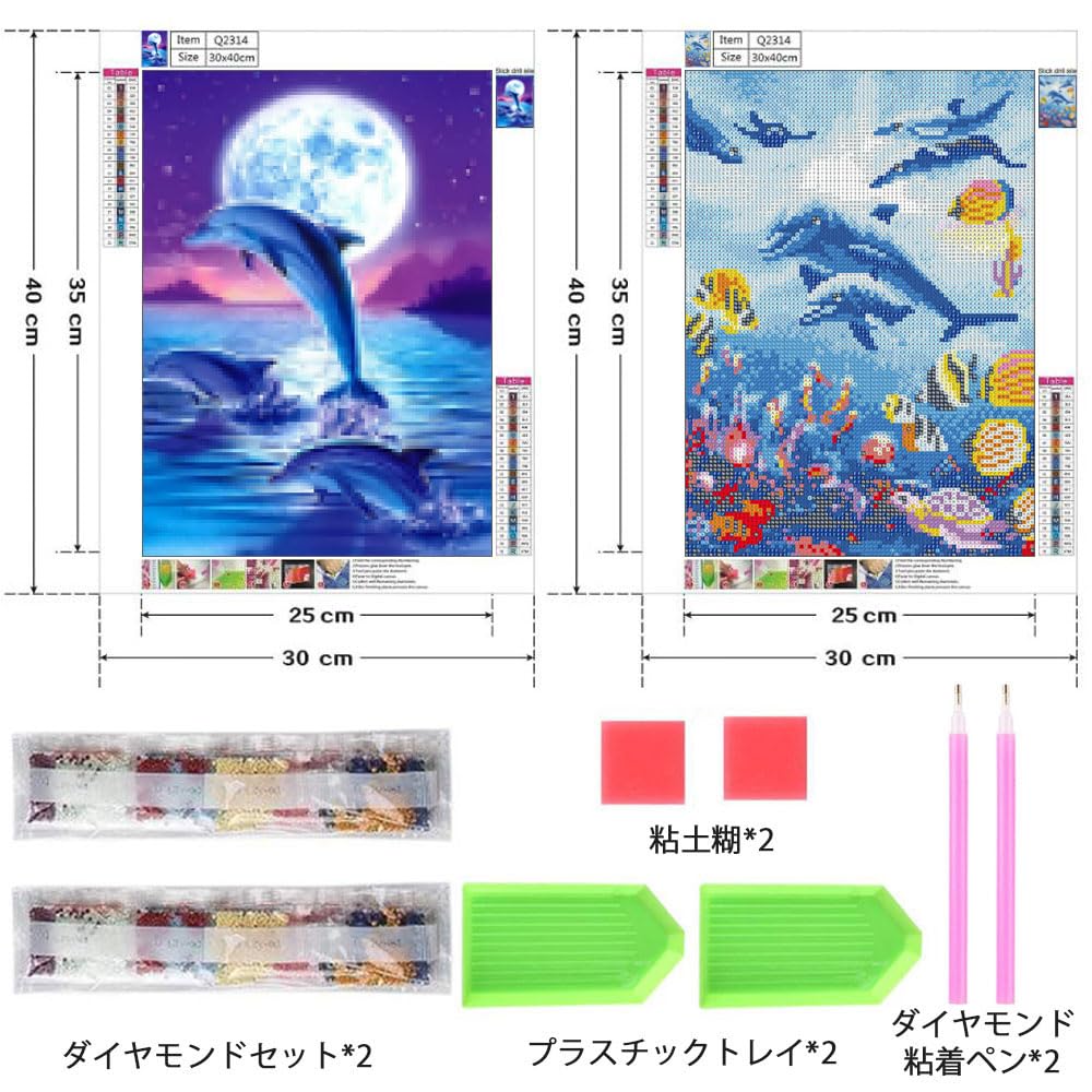 サムコス ダイヤモンドアート キット ダイヤモンドの絵画 2個セット きれい 全面貼り付け ダイヤモンドアート 5D 初心者 大人の子供 DIY 手芸キット 家の壁の装飾 ((イルカ頭1))