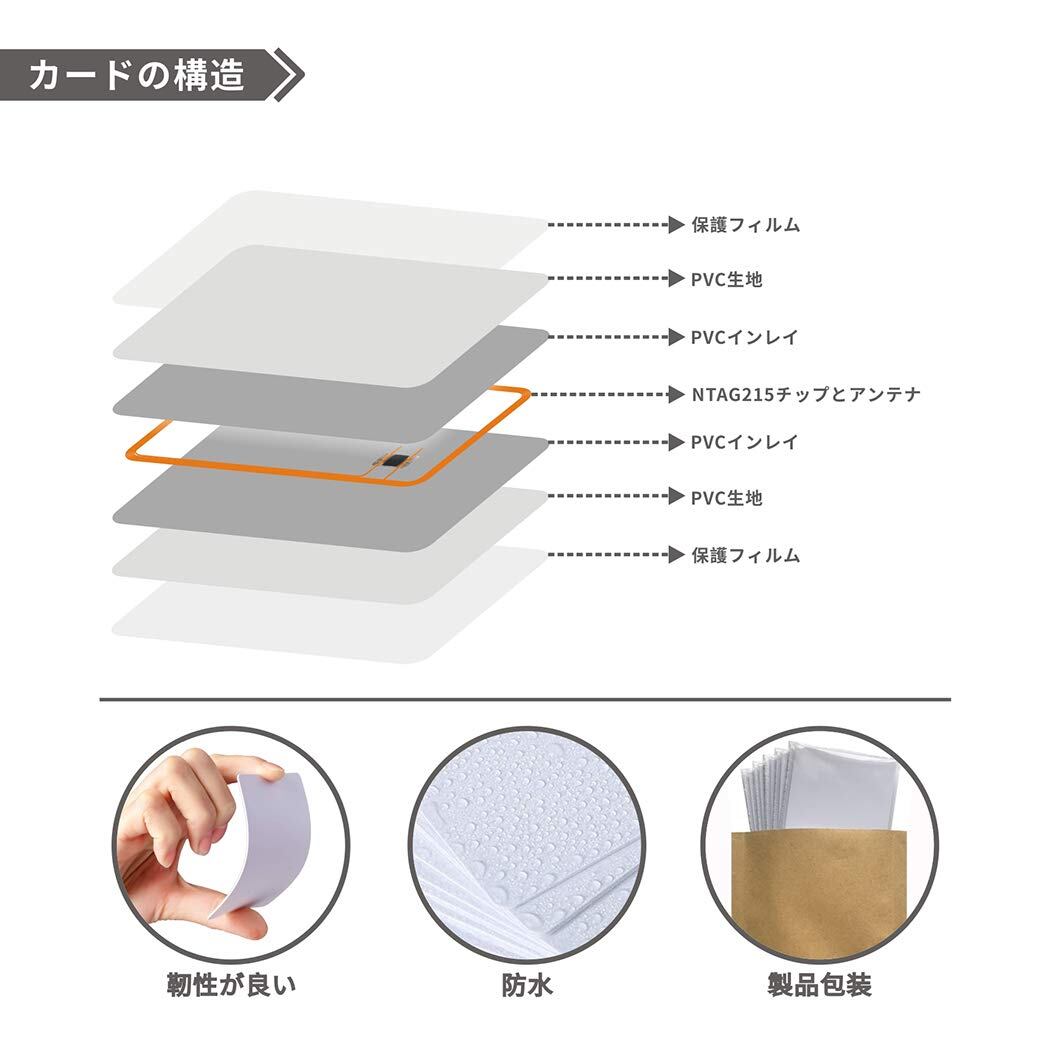 50枚NFCカードNTAG215カード白無地 ホワイトPVCカード NFC 215カードタグ 防水 504バイト iPhone対応 android対応 ショートカットアプリ対応