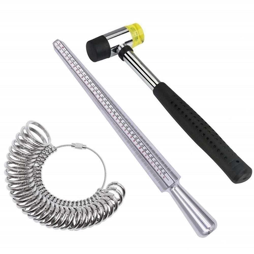 日本規格リングサイズ2点セット 指輪サイズゲージ リングゲージ リング棒 ハンマー まで対応 日本標準規格 指輪 サイズ 調整 プロ仕様 指輪測定用 工具 道具 (3 PACK)