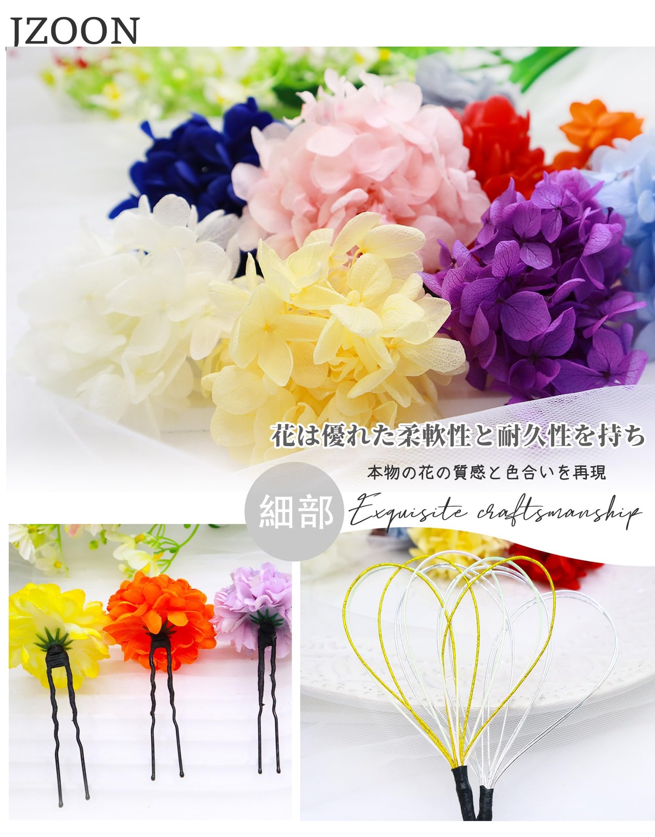 【JZOON】全12色 浴衣 髪飾り 成人式 袴 卒業式 和服 和装 着物 ドライフラワー ピンポンママ 紫陽花 かすみ草 金色の玉 水引 赤 白 青 オレンジ B7001