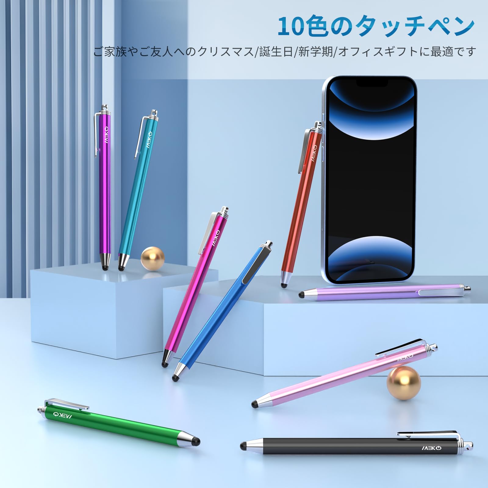 MEKO 10本セットタッチペン ペン先交換可能 6mmスタイラスペン ススマートフォン タブレット スタイラスペン iPad iPhone Android 静電容量性 ゴムペン先 10本セット+20個交換ペン先 | geisha Cat*