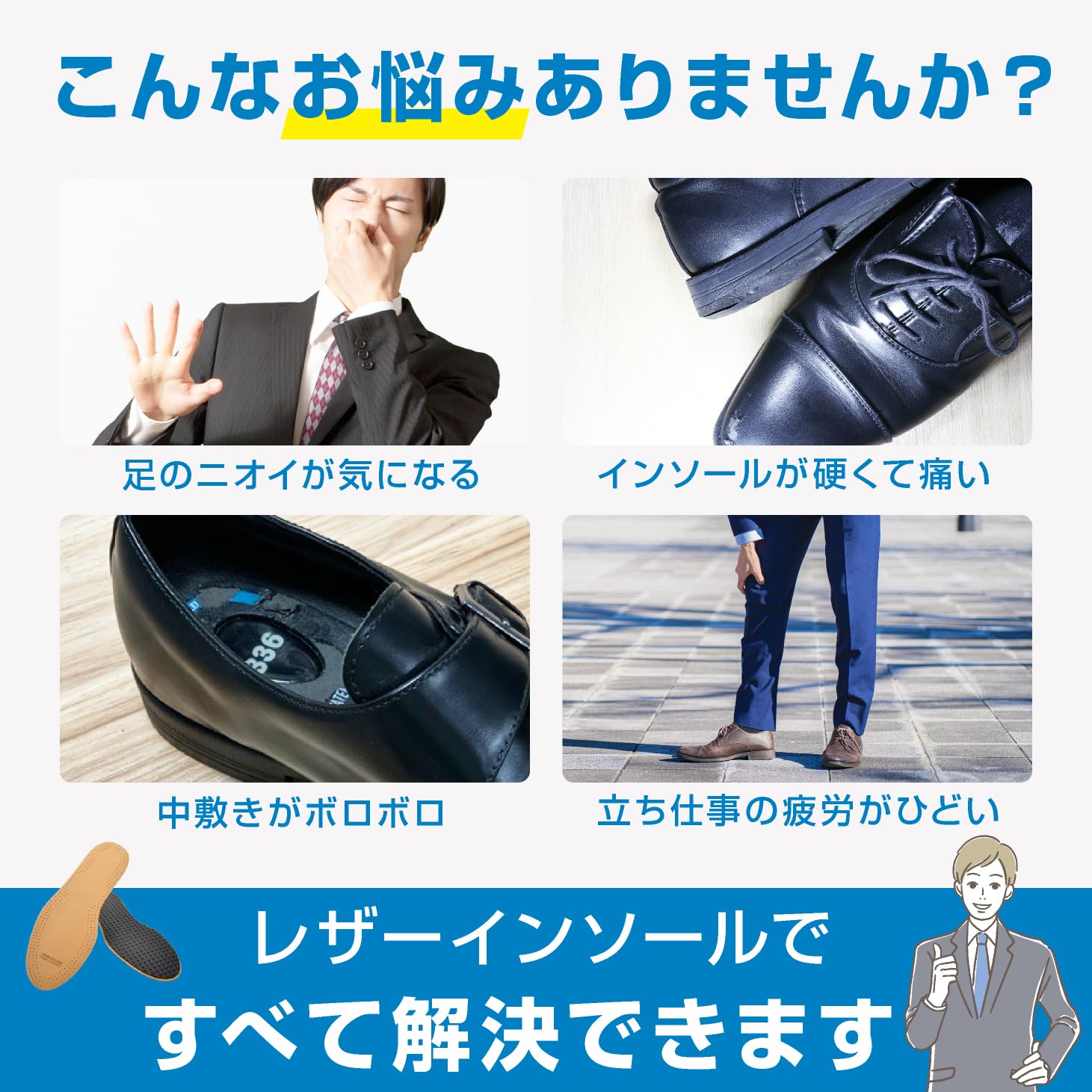 【薄くて入れやすい】どの革靴にも入れやすいよう薄型に仕上げ靴の中でも窮屈にならない形に仕上げました