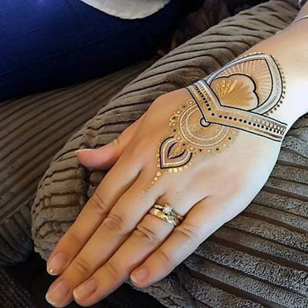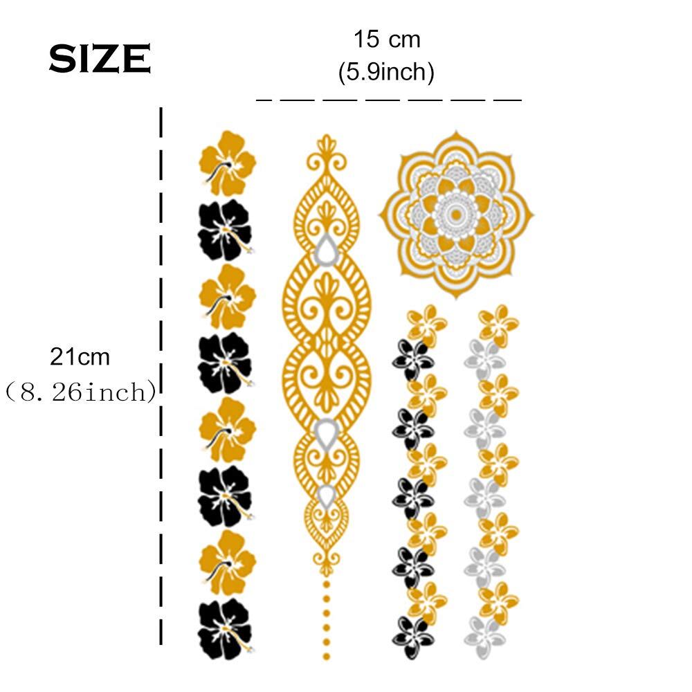 Yesallwas タトゥーシール ゴールド キラキラ リアル 大判 8枚セット メタル 星 羽 海 花 輝く 刺青シール 入れ墨シール ボディーシール レディース 腕、足、体、背中に 15x21cm (A)